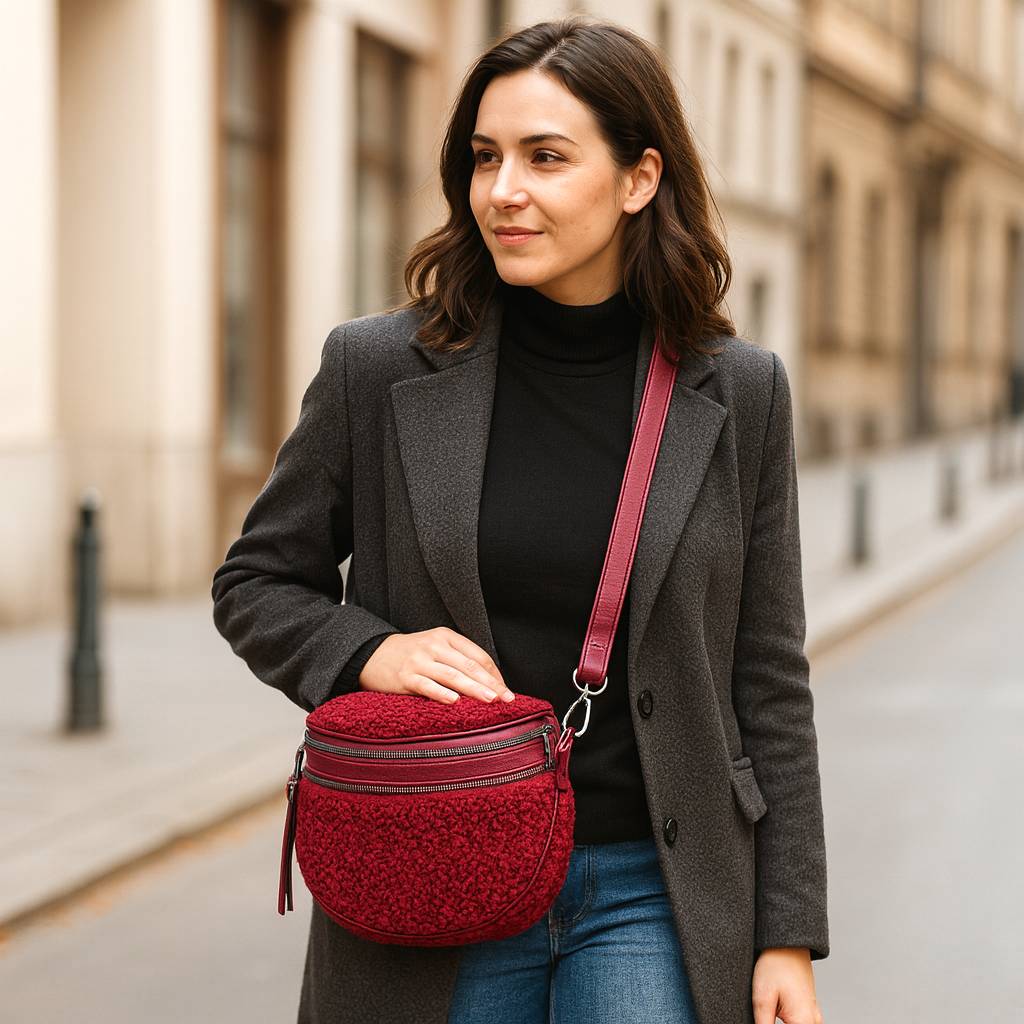 Štýlová dámska crossbody kabelka je dokonalým módnym doplnkom, ktorý spája originalitu, hravosť a praktickosť. Jej povrch z imitácie kožušiny pôsobí mäkko, nadýchané a príjemne na dotyk, vďaka čomu kabelka vyniká medzi klasickými modelmi.
