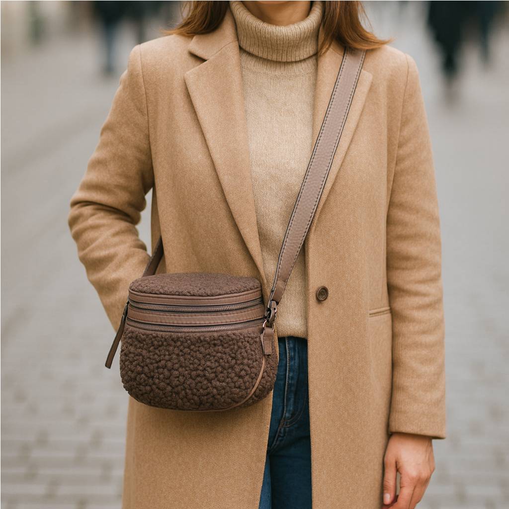 Štýlová dámska crossbody kabelka je dokonalým módnym doplnkom, ktorý spája originalitu, hravosť a praktickosť. Jej povrch z imitácie kožušiny pôsobí mäkko, nadýchané a príjemne na dotyk, vďaka čomu kabelka vyniká medzi klasickými modelmi.