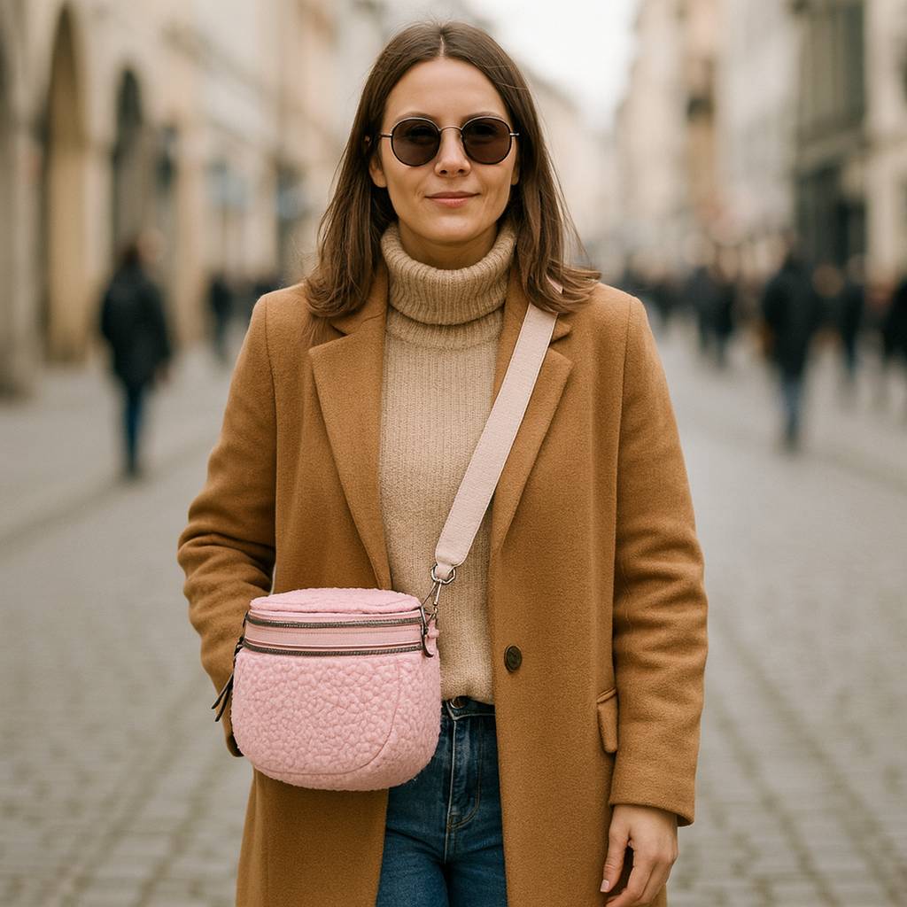 Štýlová dámska crossbody kabelka je dokonalým módnym doplnkom, ktorý spája originalitu, hravosť a praktickosť. Jej povrch z imitácie kožušiny pôsobí mäkko, nadýchané a príjemne na dotyk, vďaka čomu kabelka vyniká medzi klasickými modelmi.