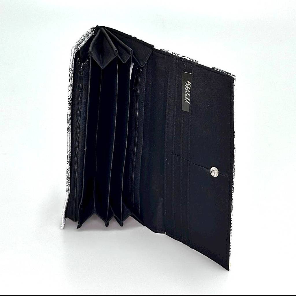 Štýlová dlhá peňaženka so sofistikovaným reliéfnym vzorom a kovovým logom na prednej strane. Vďaka premyslenému členeniu má všetko svoje miesto – od kariet a bankoviek až po mince či bločky. Ideálna do ruky aj do kabelky.