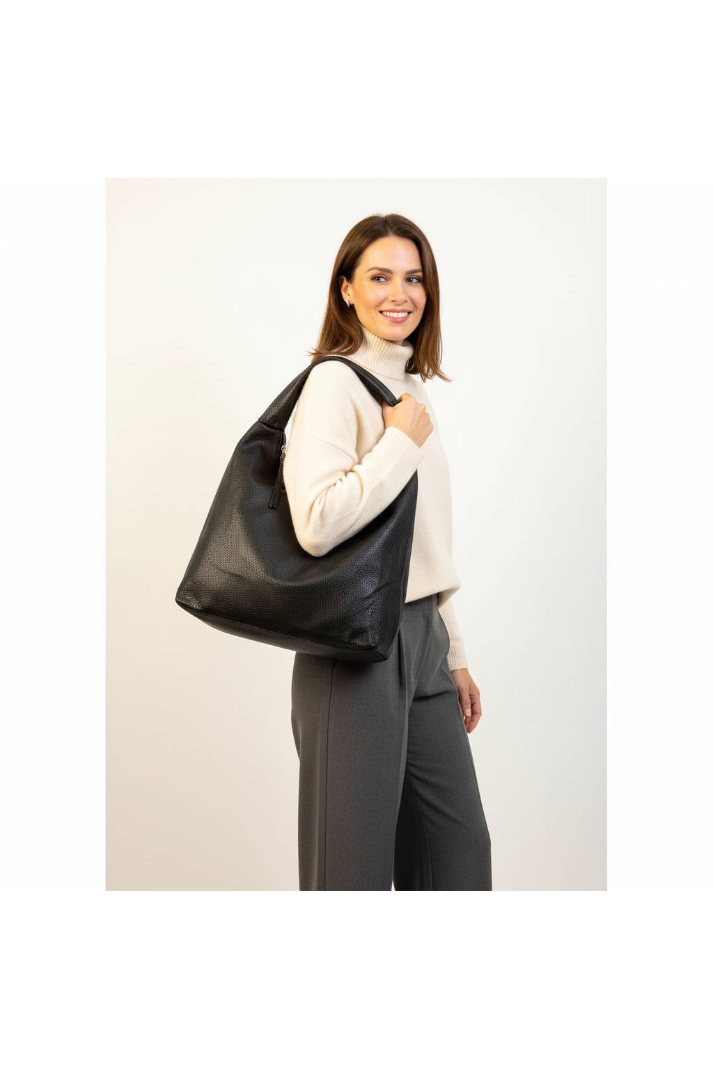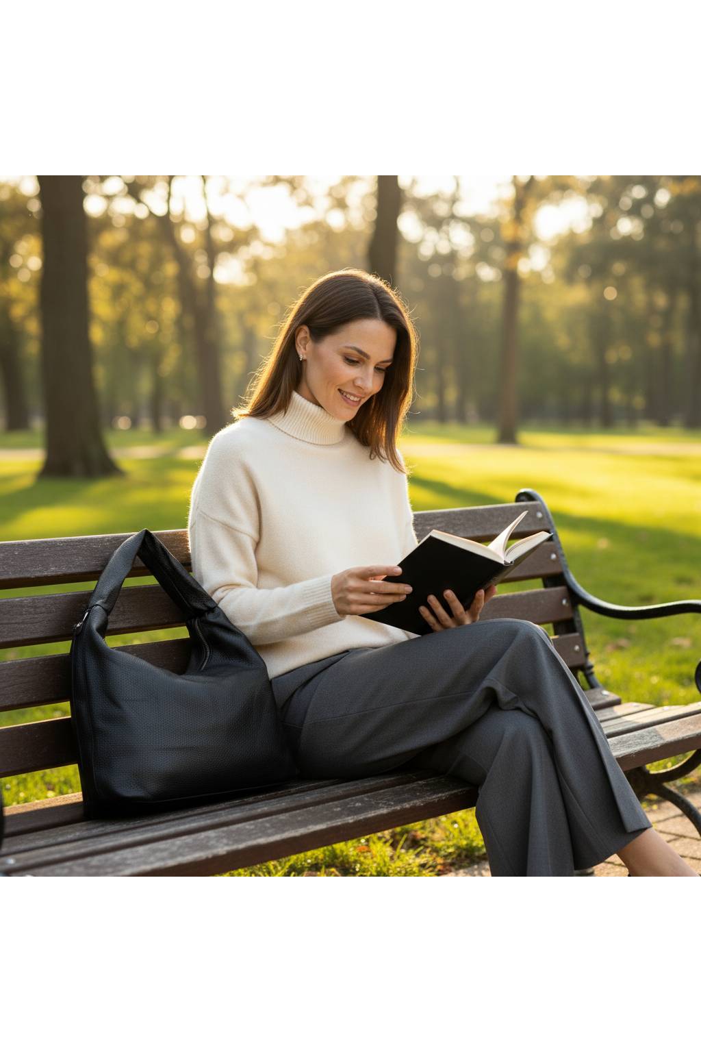 Elegantná a priestranná kabelka na každý deň, ktorá spája mäkký hobo tvar so shopper objemom. Vďaka pohodlnému ramennému uchu a priloženému dlhému nastaviteľnému popruhu ju môžete nosiť v ruke, na pleci aj crossbody. Praktické vonkajšie vrecko na zips uľahčí prístup k mobilu či kľúčom, vo vnútri čaká prehľadná 3-komorová organizácia so zipsovým deličom. Univerzálny dizajn dostupný v viacerých farbách sa hodí do práce, na nákupy aj voľný čas.