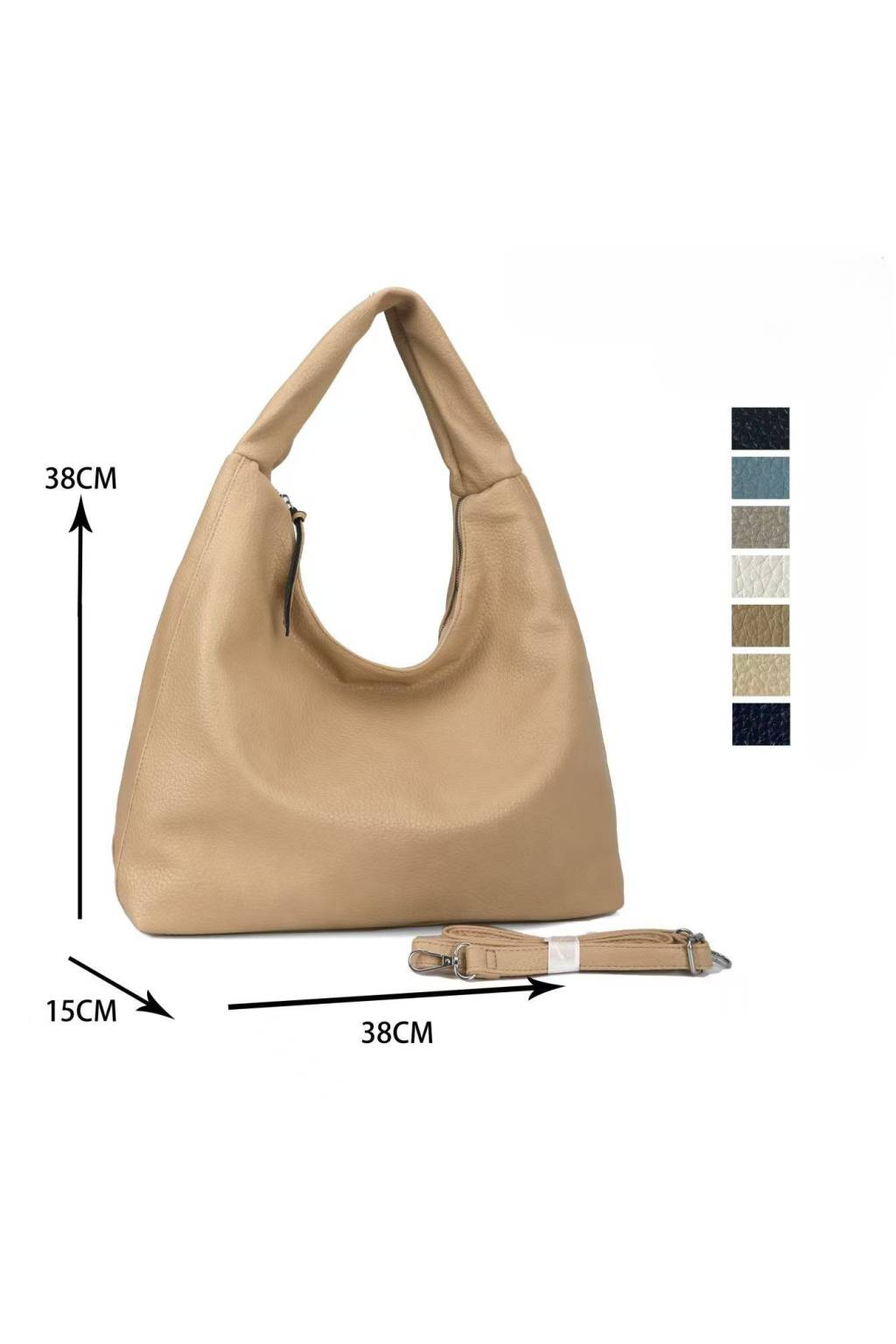 Elegantná a priestranná kabelka na každý deň, ktorá spája mäkký hobo tvar so shopper objemom. Vďaka pohodlnému ramennému uchu a priloženému dlhému nastaviteľnému popruhu ju môžete nosiť v ruke, na pleci aj crossbody. Praktické vonkajšie vrecko na zips uľahčí prístup k mobilu či kľúčom, vo vnútri čaká prehľadná 3-komorová organizácia so zipsovým deličom. Univerzálny dizajn dostupný v viacerých farbách sa hodí do práce, na nákupy aj voľný čas.