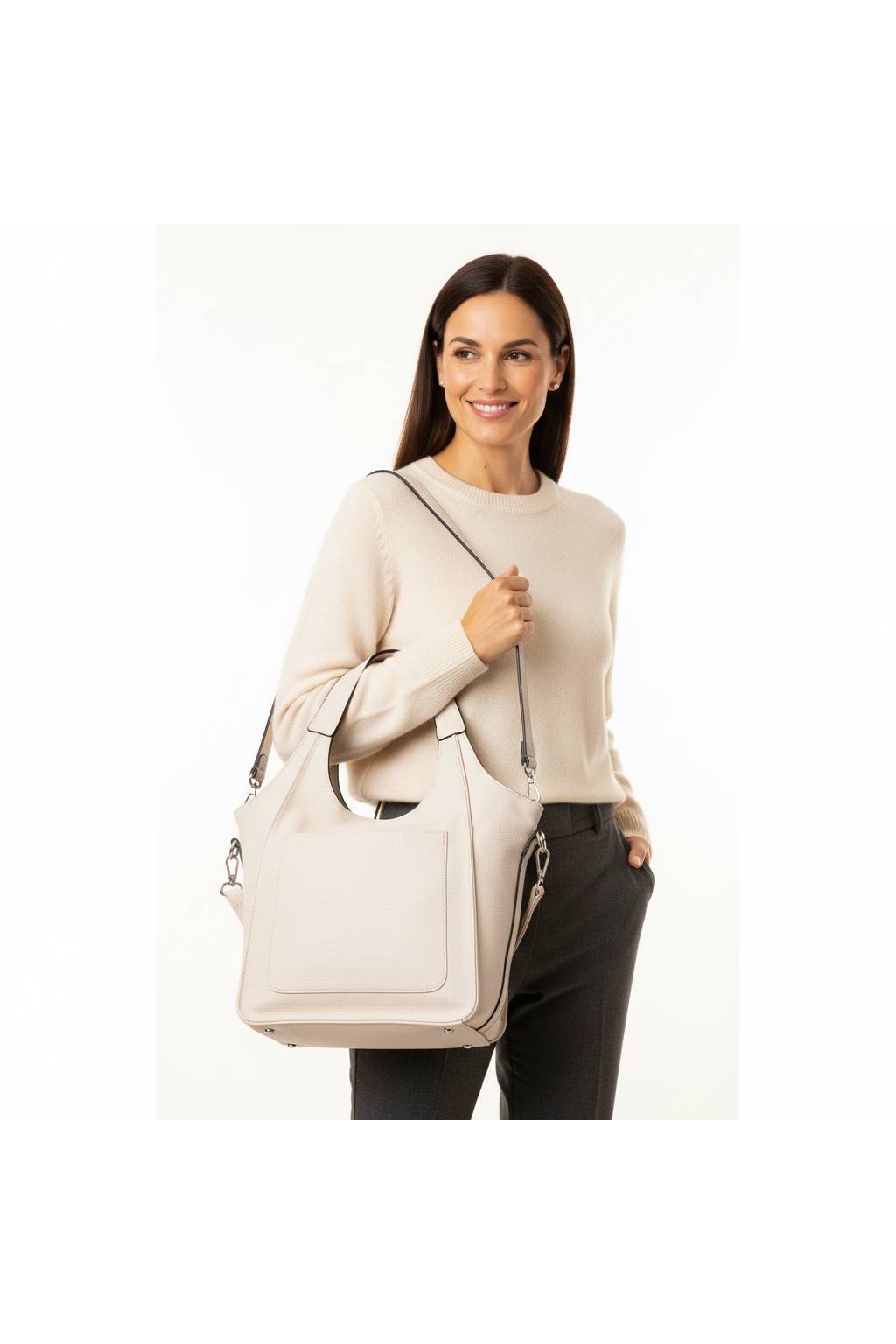 Elegantná, nadčasová a hlavne praktická – presne taká je táto dámska kabelka, ktorú využijete každý deň. Vďaka pohodlným ušiam sa nosí na ramene, a keď potrebujete voľné ruky, jednoducho pripnete nastaviteľný dlhý popruh a nosíte ju ako crossbody. Priestranný tvar sa postará o to, že budete mať všetko dôležité vždy poruke – do práce, do mesta aj na víkend.