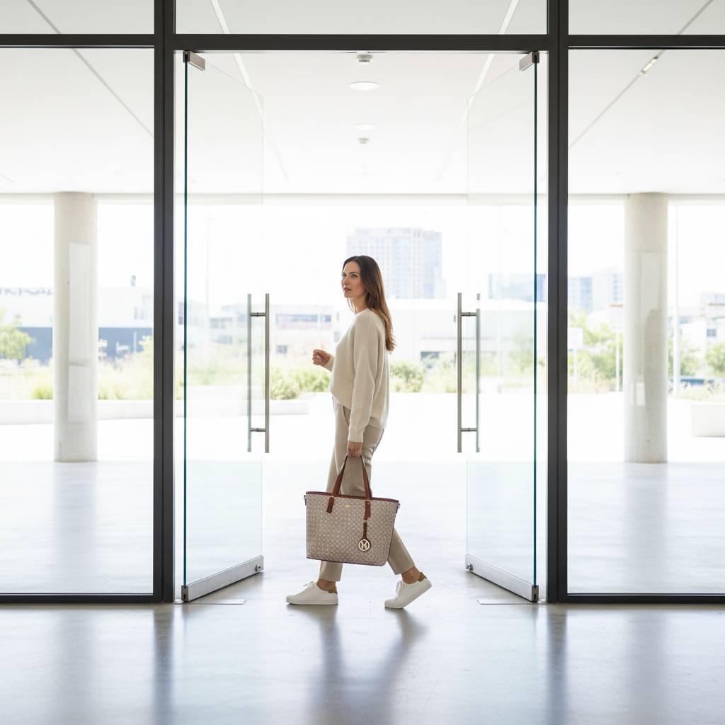 Elegantná shopper kabelka s jemným all-over vzorom a kontrastnými remienkami je stvorená na každý deň – do práce, na nákupy aj do mesta. Vďaka premyslenému vnútornému usporiadaniu udrží poriadok, pôsobí upravene a zároveň je príjemne ľahká.