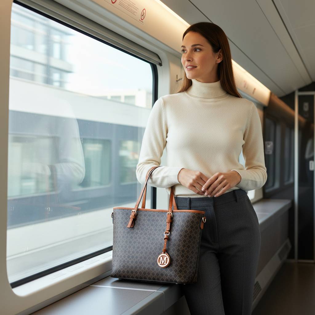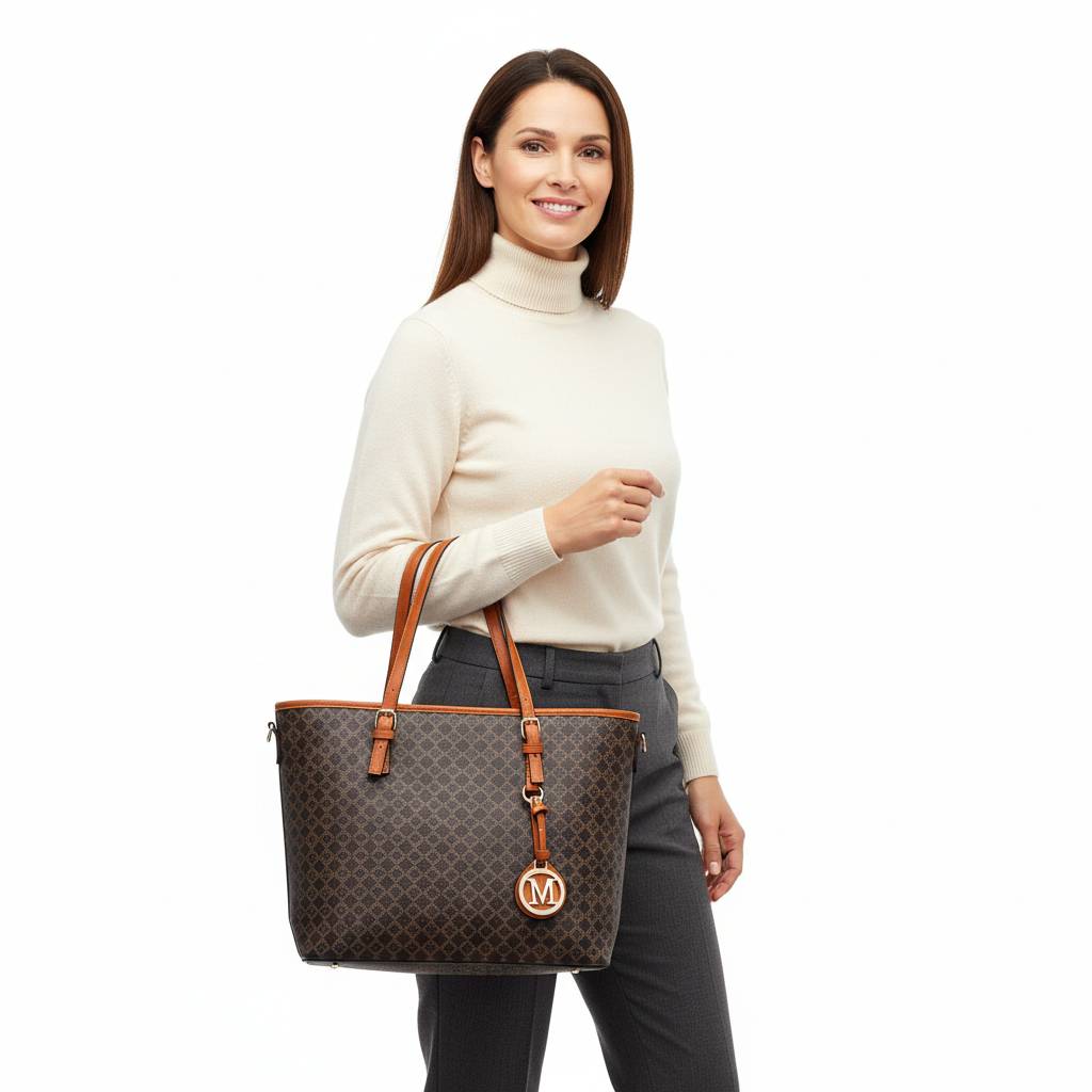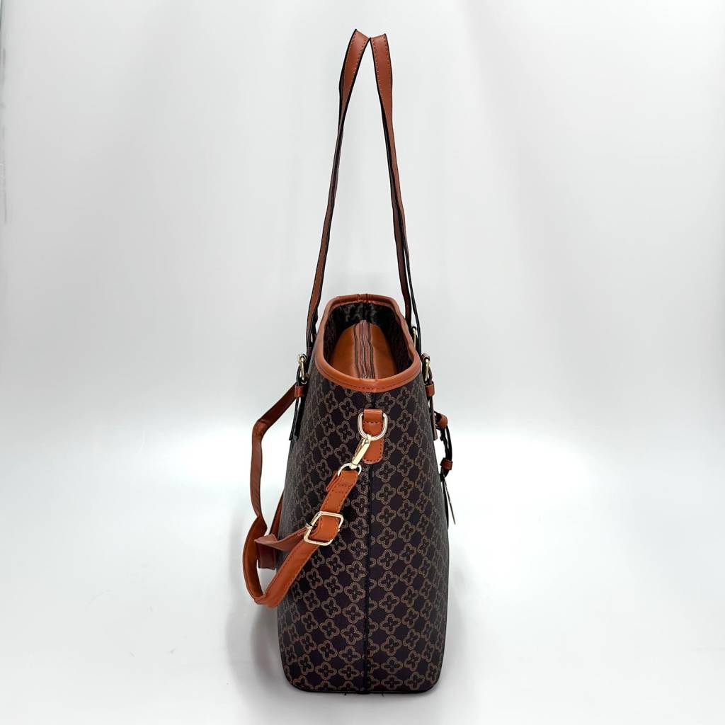 Elegantná shopper kabelka s jemným all-over vzorom a kontrastnými remienkami je stvorená na každý deň – do práce, na nákupy aj do mesta. Vďaka premyslenému vnútornému usporiadaniu udrží poriadok, pôsobí upravene a zároveň je príjemne ľahká.