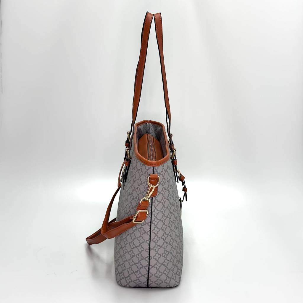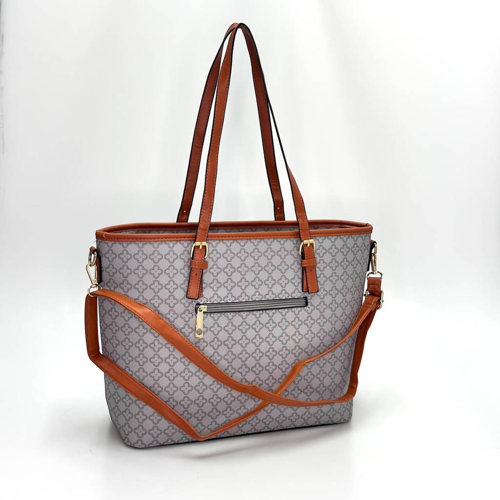 Elegantná shopper kabelka s jemným all-over vzorom a kontrastnými remienkami je stvorená na každý deň – do práce, na nákupy aj do mesta. Vďaka premyslenému vnútornému usporiadaniu udrží poriadok, pôsobí upravene a zároveň je príjemne ľahká.