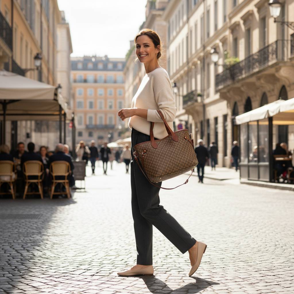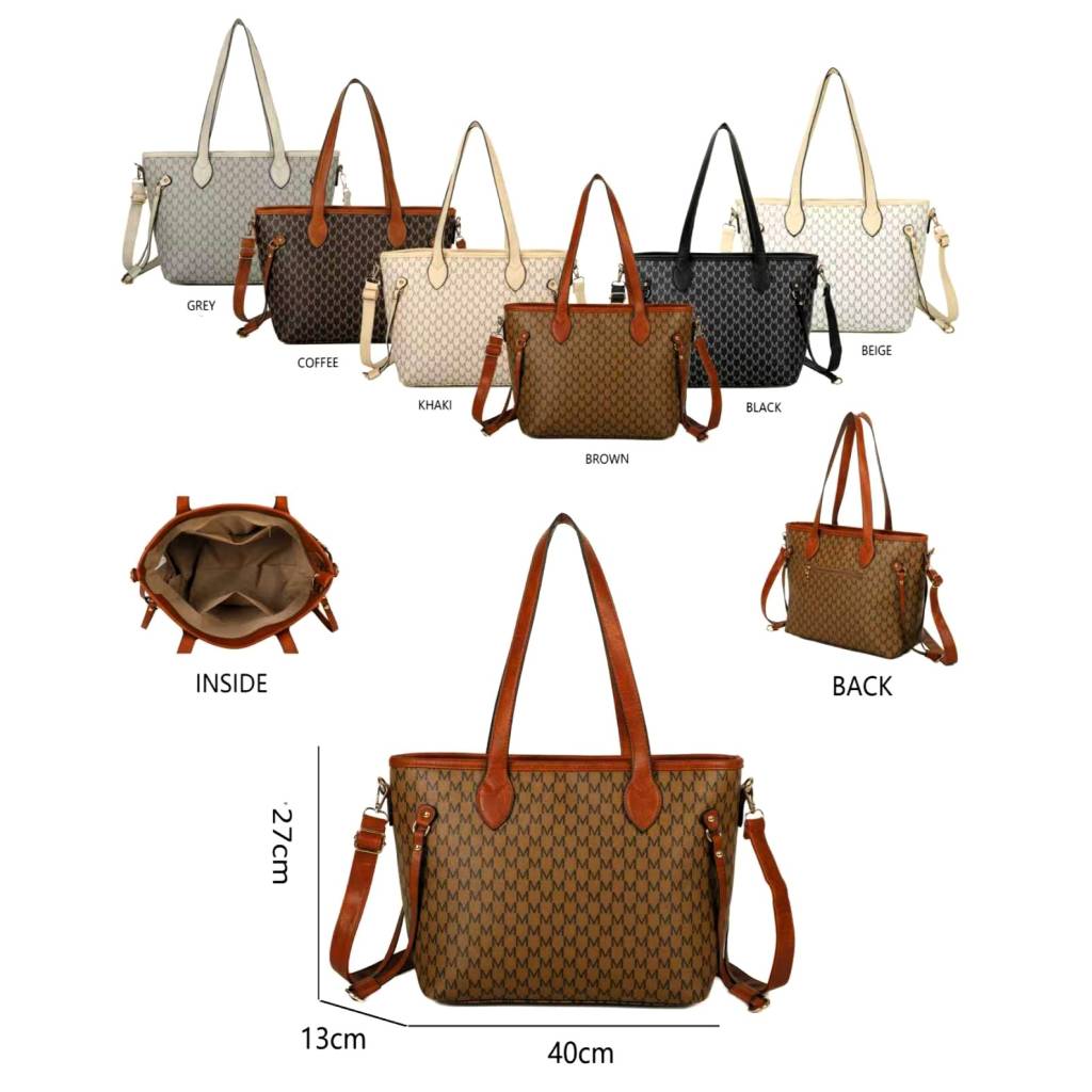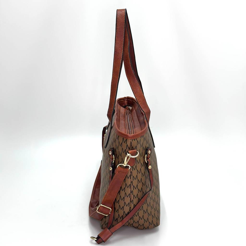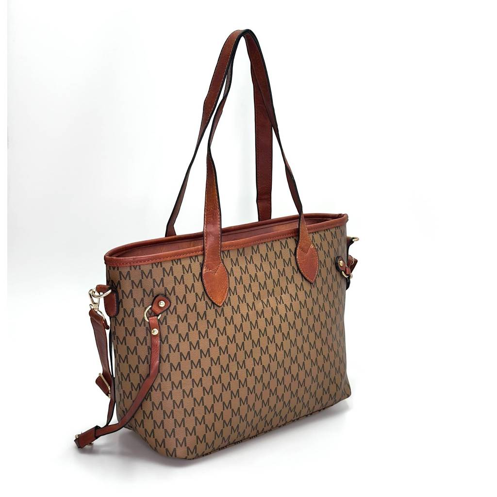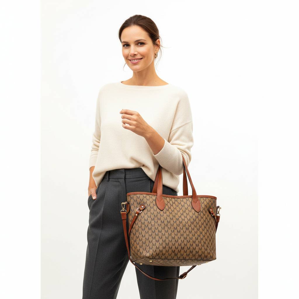 Elegantná mestská shopper kabelka s jemným monogramovým vzorom a kontrastnými detailmi. Vďaka praktickému tvaru, pevnému dnu a dlhým rúčkam je ideálna na každý deň – do práce, do mesta aj na nákupy.