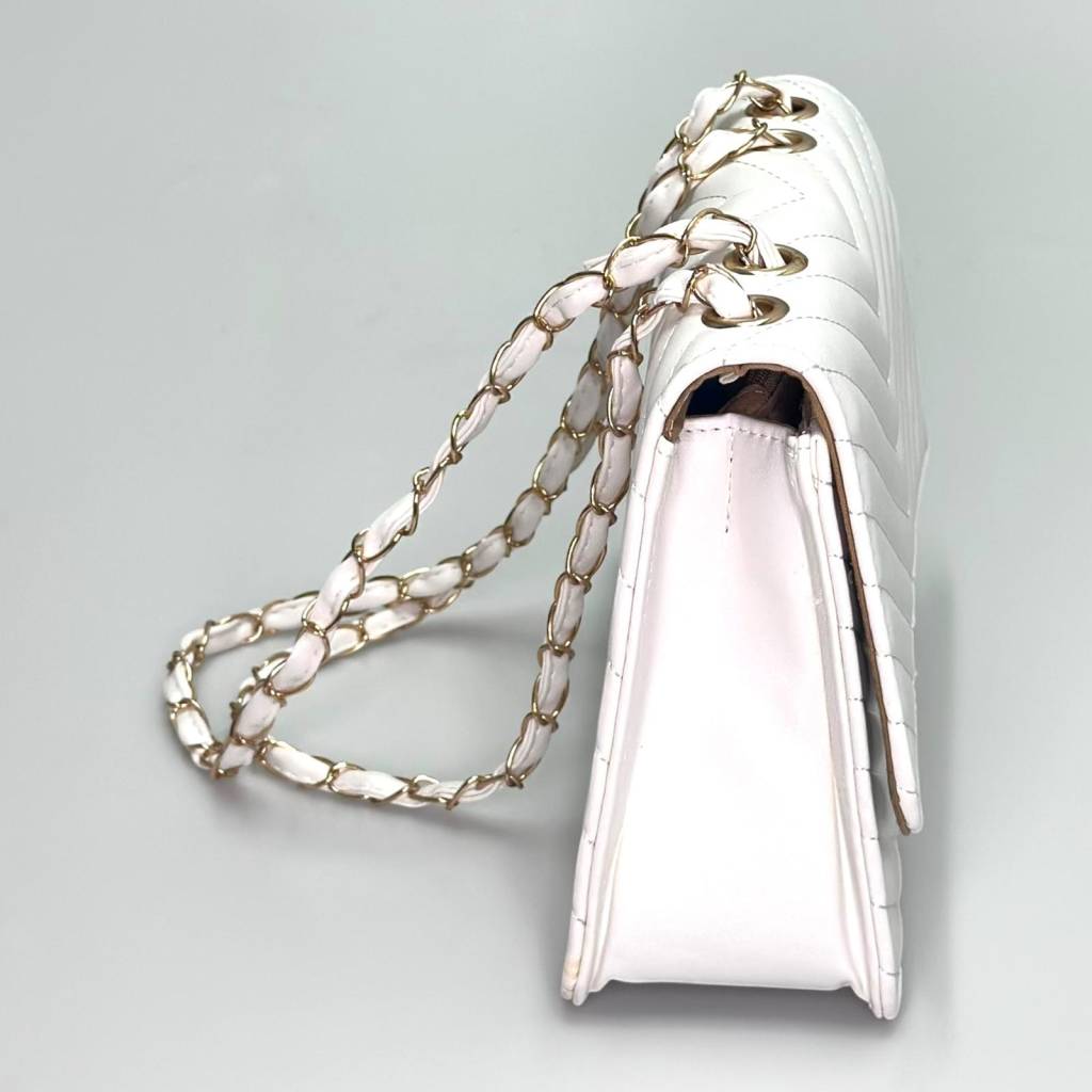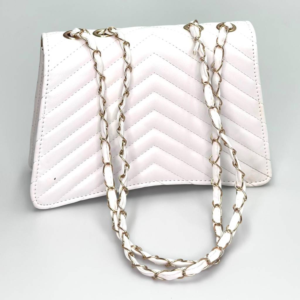 Elegantná mini kabelka s trendovým „chevron“ prešívaním a retiazkovým popruhom je ideálna na spoločenské akcie, svadby, plesy aj večerné výjazdy do mesta. Univerzálny formát pojme všetko podstatné a vďaka viacerým farebným variantom ju ľahko zladíte s outfitom.