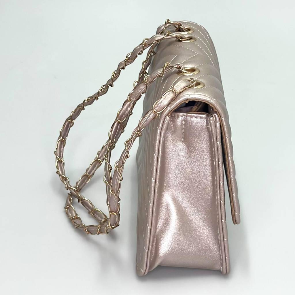 Elegantná mini kabelka s trendovým „chevron“ prešívaním a retiazkovým popruhom je ideálna na spoločenské akcie, svadby, plesy aj večerné výjazdy do mesta. Univerzálny formát pojme všetko podstatné a vďaka viacerým farebným variantom ju ľahko zladíte s outfitom.