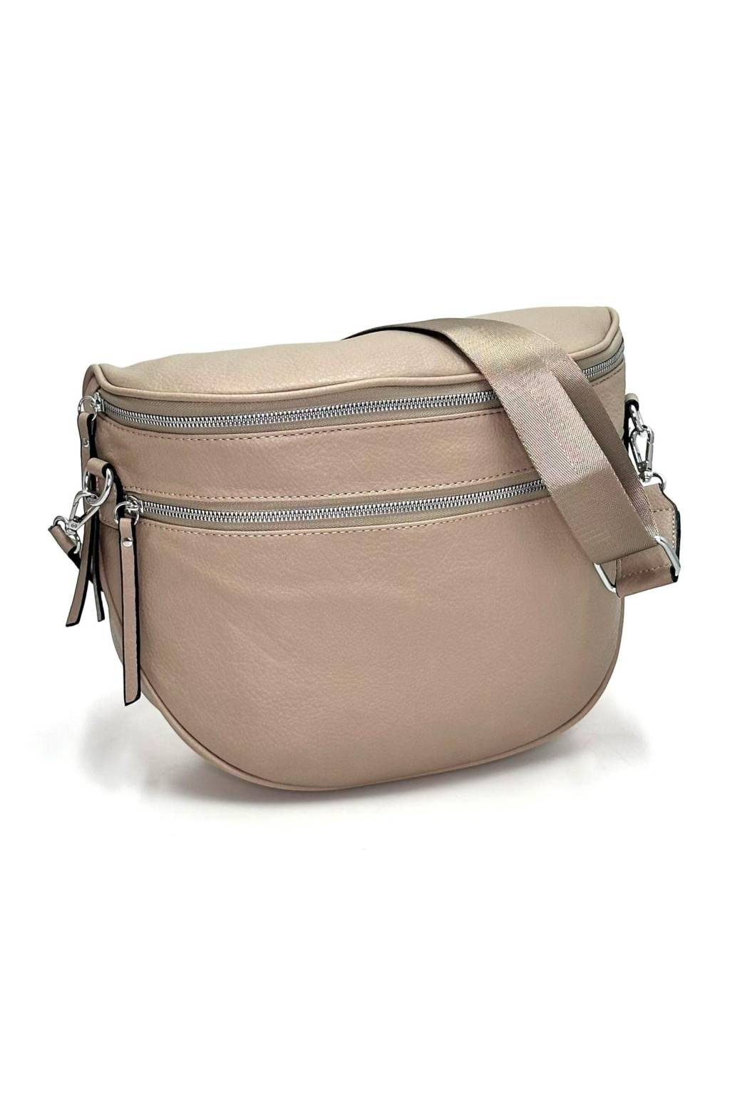 Trendy veľká crossbody ľadvinka s extra širokým nastaviteľným popruhom. Mäkká eko koža, čisté línie a dve výrazné zipsové línie – ideálna voľba na každý deň aj na cestovanie.