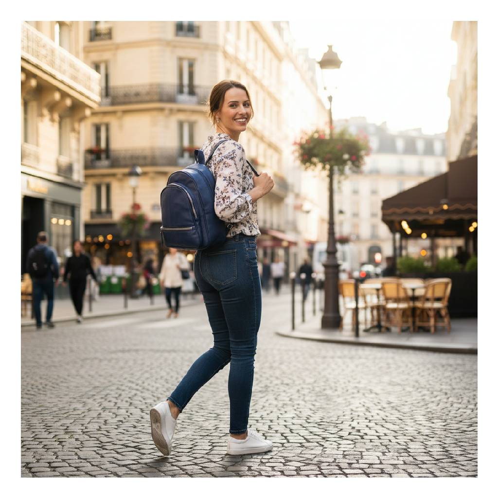 Univerzálny dámsky ruksak do mesta aj na výlety. Mäkká, príjemne štruktúrovaná eko koža, dve priestranné hlavné komory na zips, predné vrecko na rýchly prístup a bočné vrecká. Nastaviteľné ramenné popruhy a pevné pútko na nosenie v ruke. K dispozícii vo viacerých farebných variantoch.