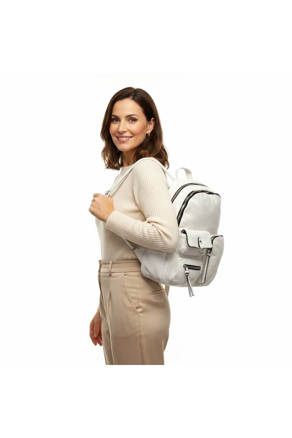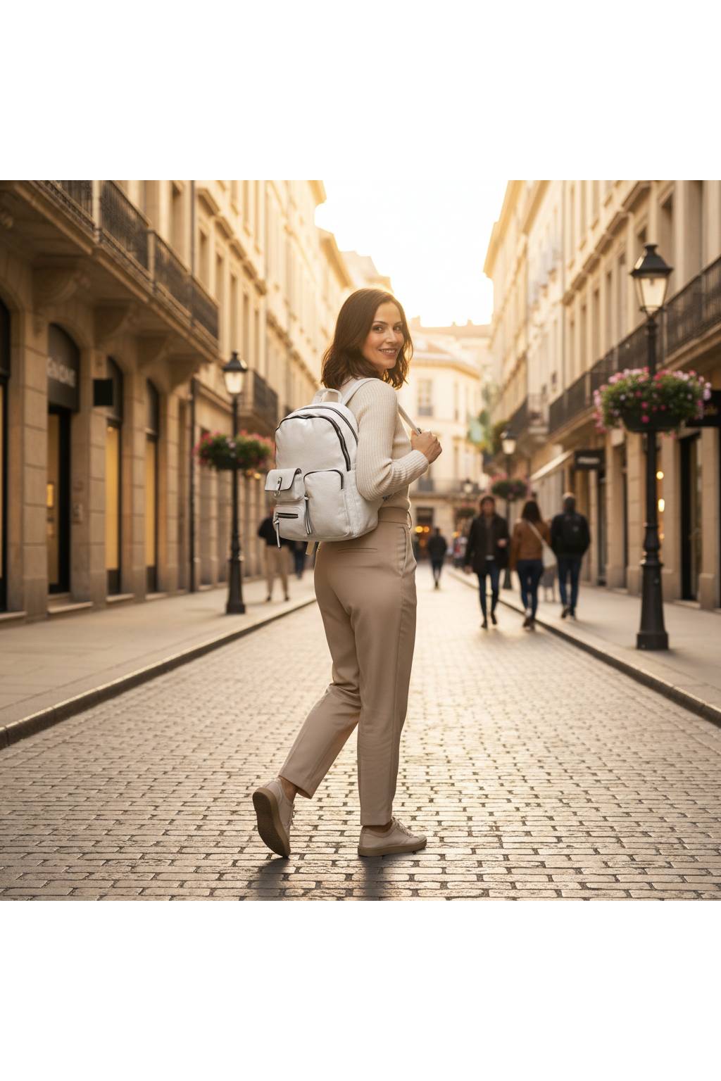 Štýlový dámsky batoh, ktorý vyzerá elegantne ako kabelka, no nosí sa pohodlne ako batoh. Je ideálny do mesta, do práce, na nákupy aj na cestovanie – ponúkne dostatok miesta na každodenné veci a vďaka viacerým vreckám budete mať všetko prehľadne usporiadané.
