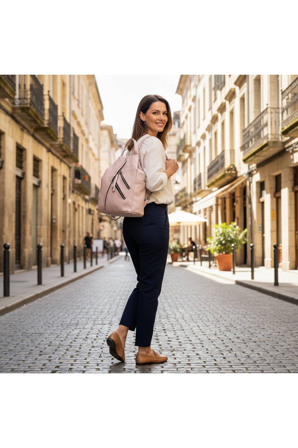 Štýlový dámsky batoh v univerzálnej farbe, ktorý skvele doladí business outfit aj voľnočasové kombinácie. Mäkký, na dotyk príjemný povrch s jemnou textúrou, kvalitné zipsy v striebornej farbe a premyslené členenie vreciek z neho robia ideálneho spoločníka do mesta, práce aj na výlety.