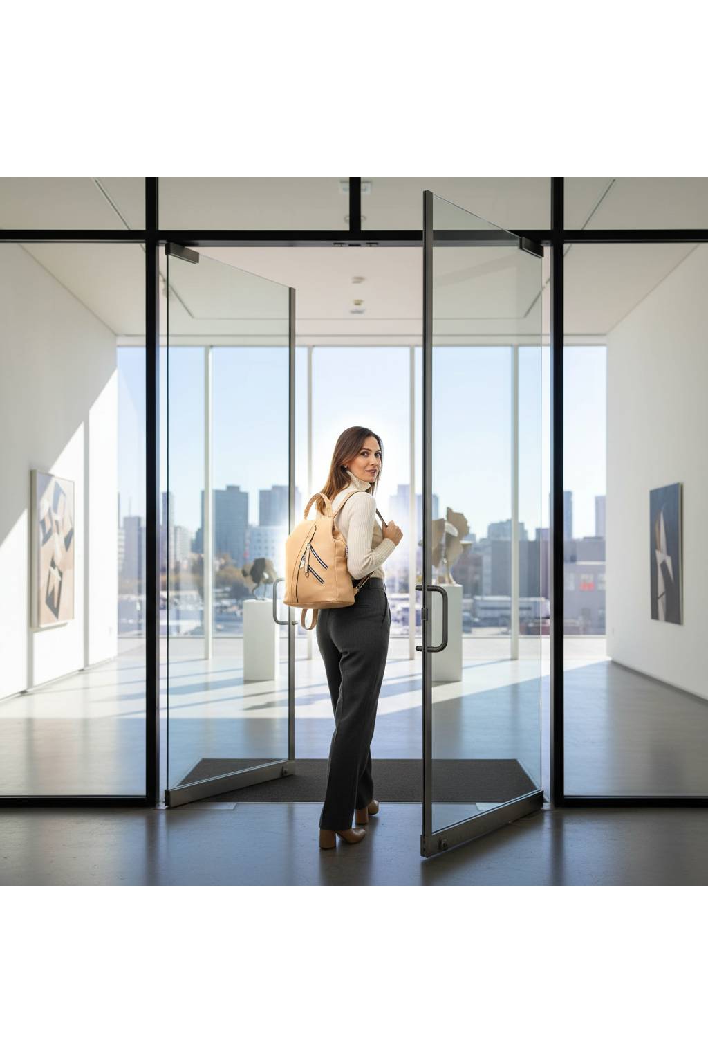 Dámsky mestský batoh 2v1 – elegantný a praktický ZFQ23 tmavo béžový