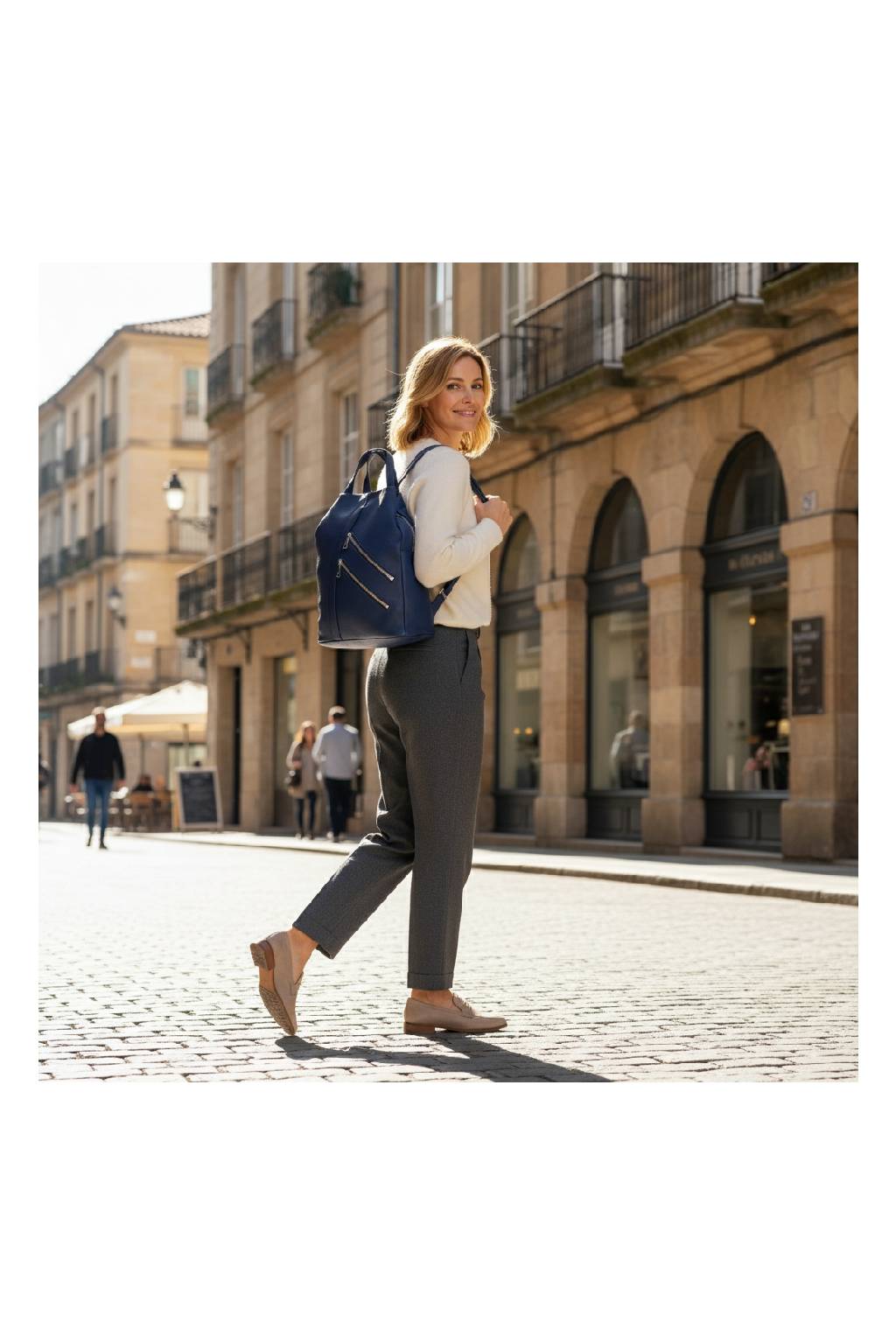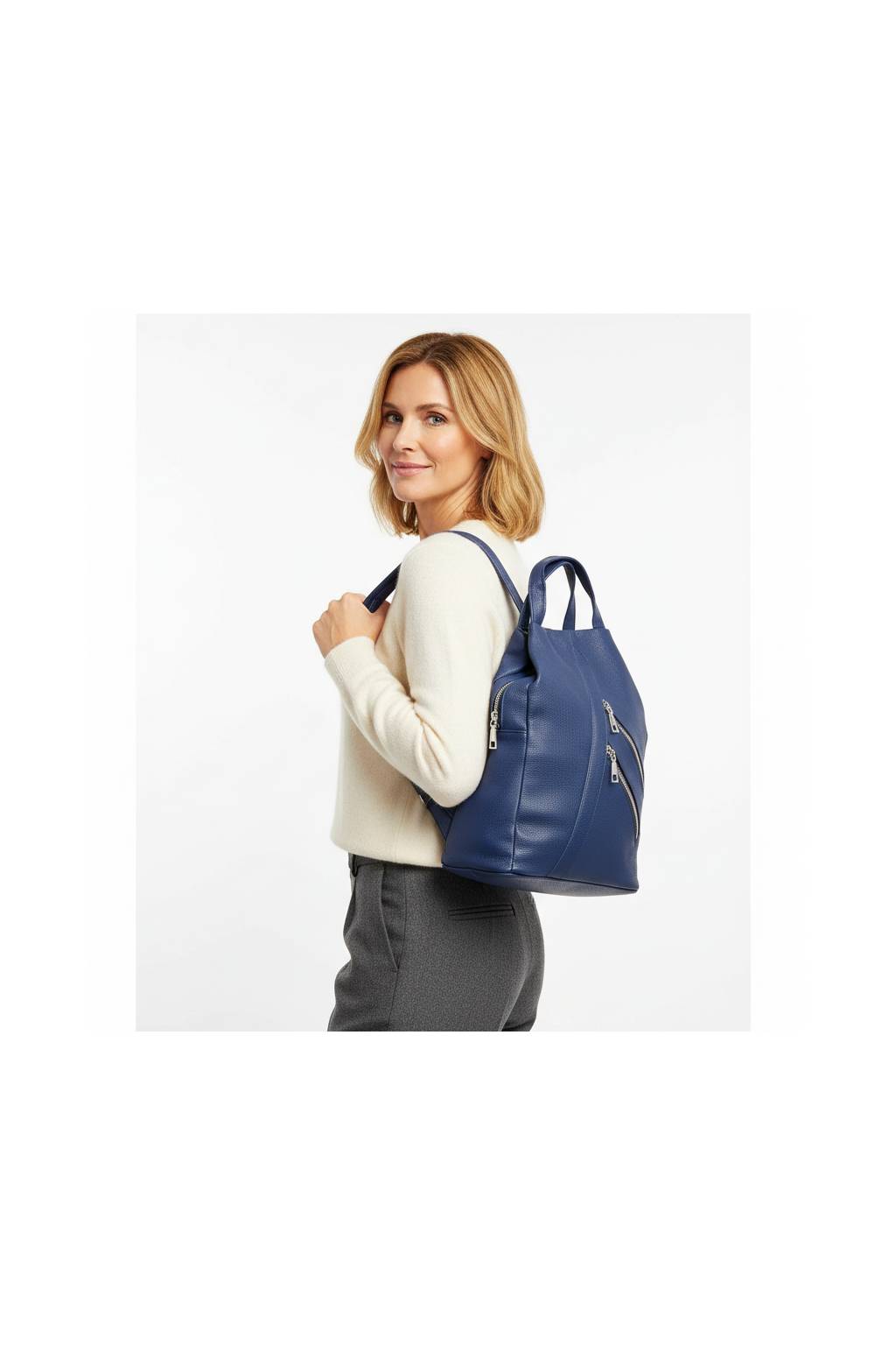 Štýlový dámsky batoh v univerzálnej farbe, ktorý skvele doladí business outfit aj voľnočasové kombinácie. Mäkký, na dotyk príjemný povrch s jemnou textúrou, kvalitné zipsy v striebornej farbe a premyslené členenie vreciek z neho robia ideálneho spoločníka do mesta, práce aj na výlety.