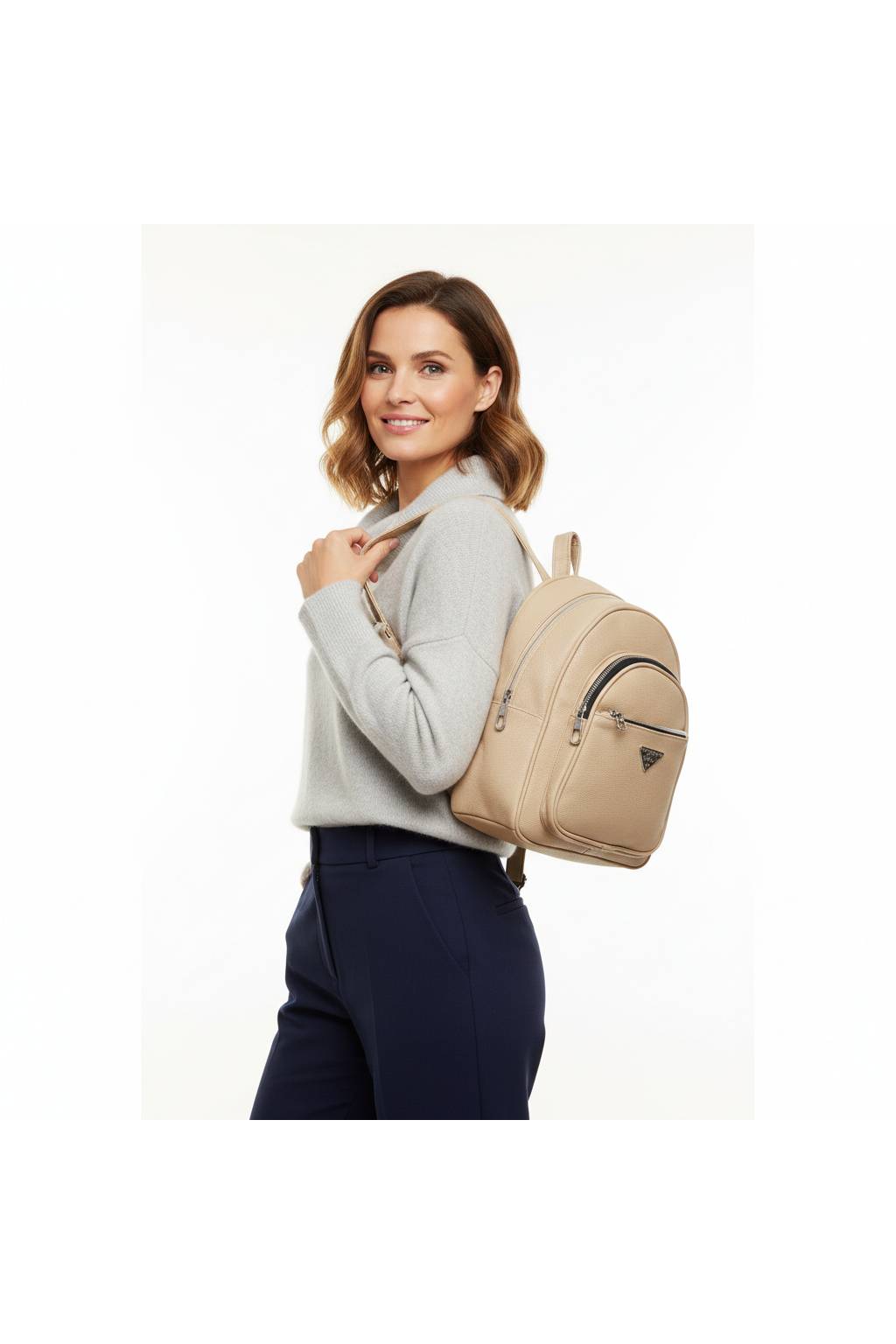 Štýlový mini batoh pre ženy, ktorý skvelo drží tvar a udrží všetko dôležité – mobil, peňaženku, kľúče, kozmetiku, okuliare aj fľašu 0,5 l. Ideálny na mesto, výlety, festivaly aj každodenné nosenie.