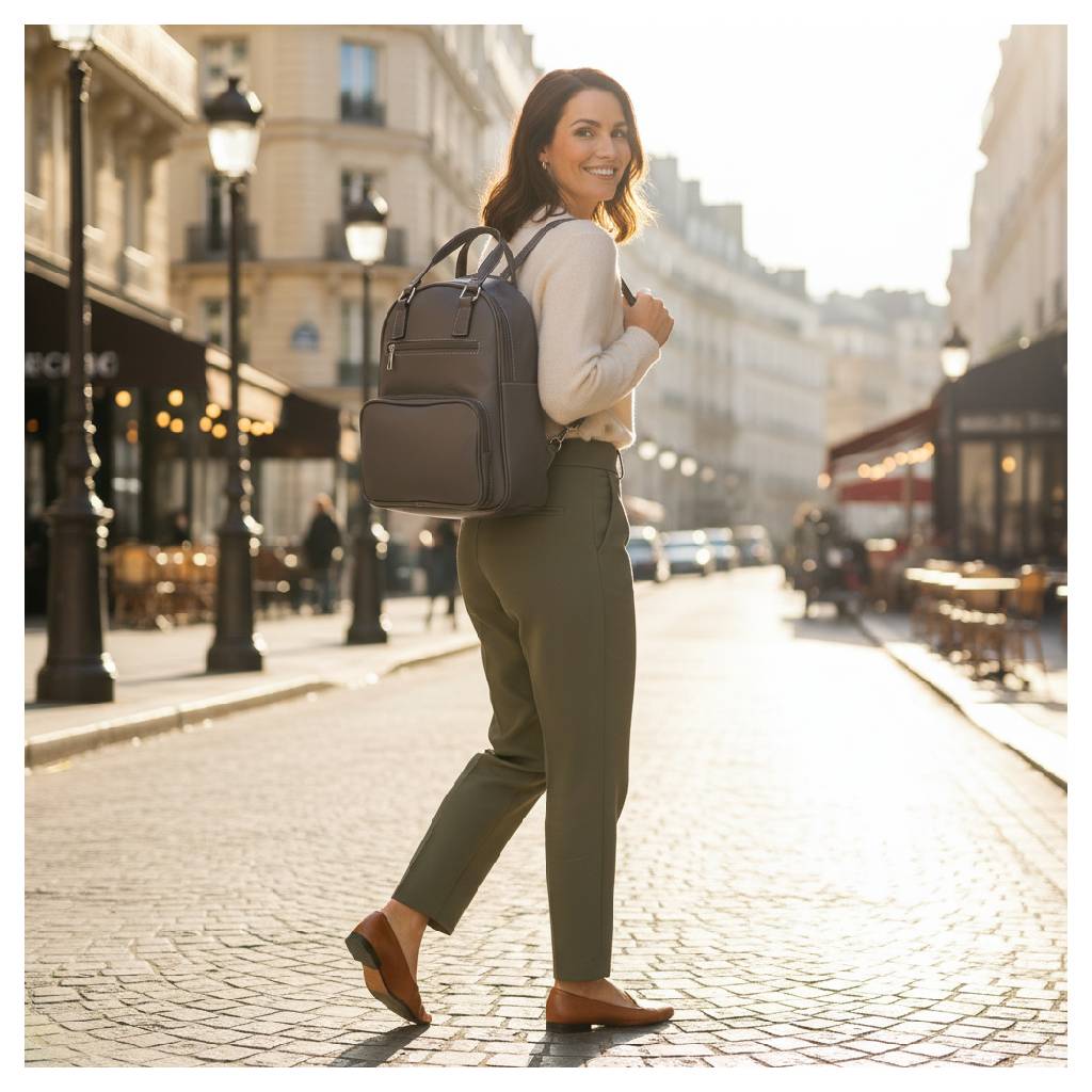 Elegantný mestský ruksak so skrytými detailmi, ktorý vďaka horným uškám poslúži aj ako kabelka do ruky. Minimalistický dizajn, praktické členenie a odolný materiál z neho robia spoľahlivého spoločníka na každý deň – do práce, školy aj na víkend.