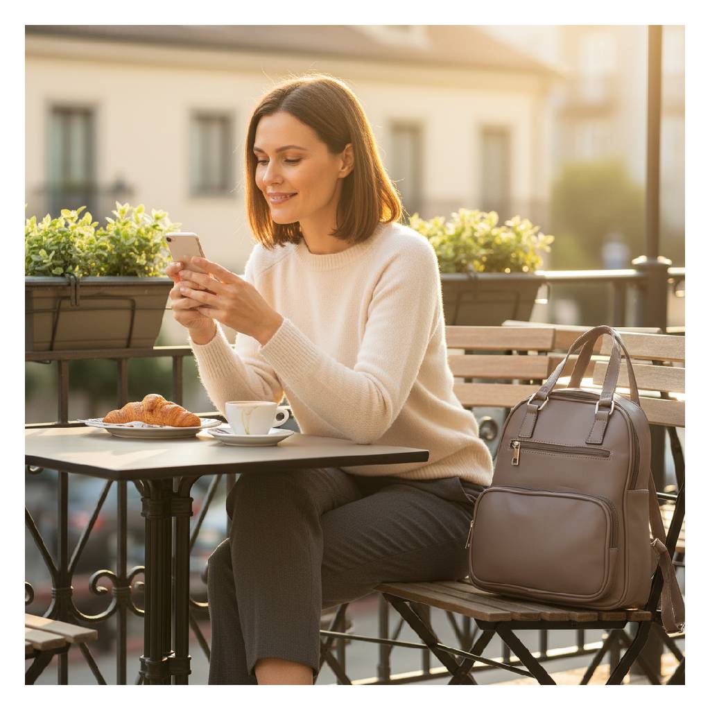 Elegantný mestský ruksak so skrytými detailmi, ktorý vďaka horným uškám poslúži aj ako kabelka do ruky. Minimalistický dizajn, praktické členenie a odolný materiál z neho robia spoľahlivého spoločníka na každý deň – do práce, školy aj na víkend.