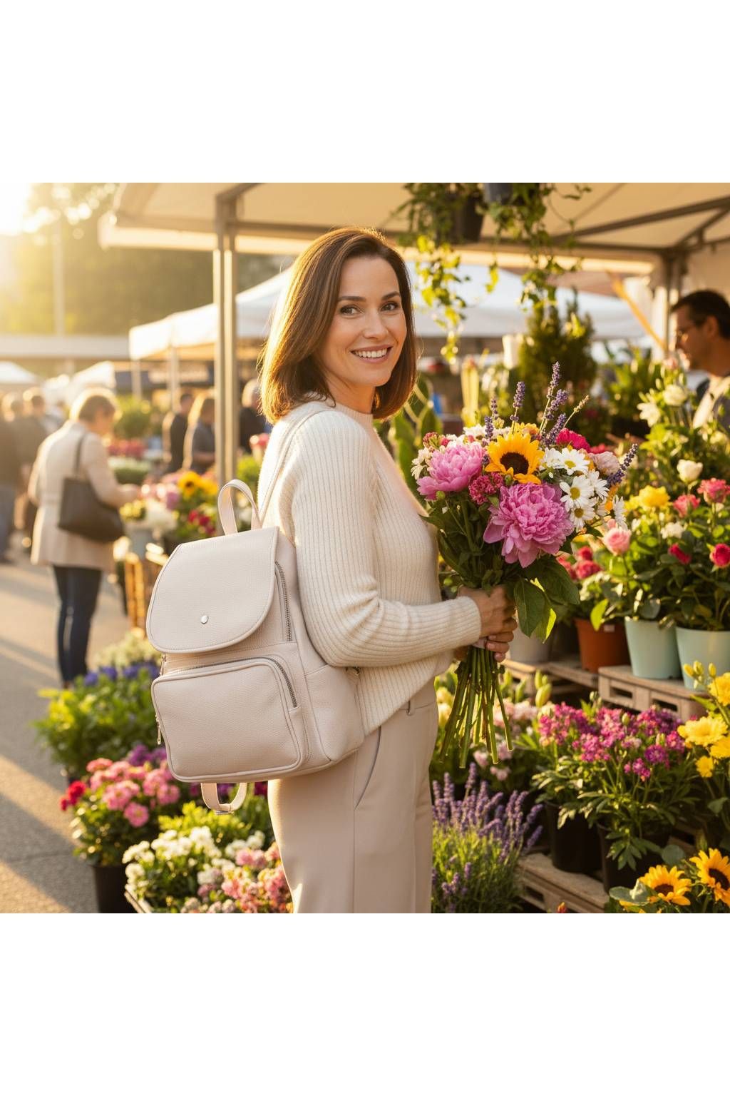 Perfektný ako dámsky batoh do mesta, batoh do práce, na cestovanie, na prechádzky aj každodenné vybavovačky. Zmestí sa peňaženka, mobil, kľúče, kozmetika, malá fľaša aj diár.