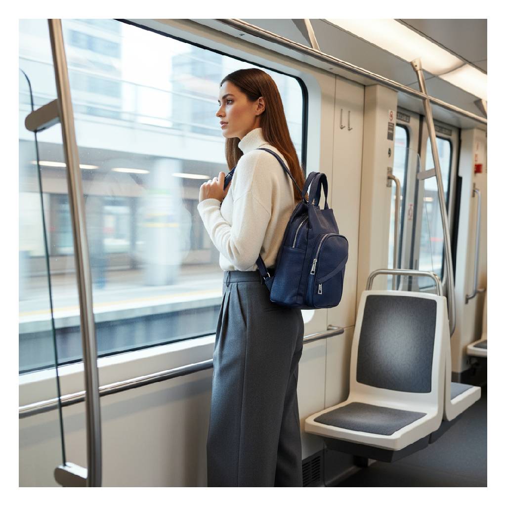 Nastaviteľné popruhy umožňujú pohodlné nosenie na chrbte, zatiaľ čo horné ušká a odnímateľný ramenný popruh ponúkajú možnosť rýchlej premeny na kabelku. Kvalitný syntetický materiál s jemnou štruktúrou pôsobí elegantne a zároveň je odolný voči každodennému používaniu.