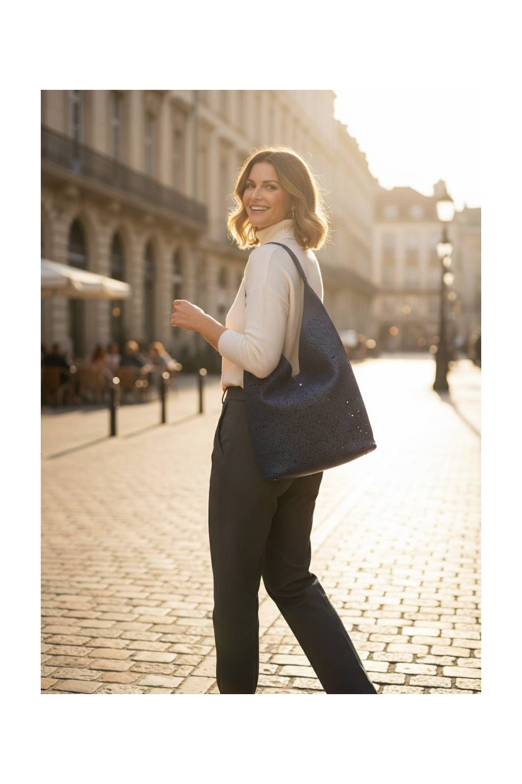 Hľadáte kabelku, ktorá vyzerá luxusne, je ľahká na nosenie a zároveň praktická na každý deň? Táto dámska kabelka v štýle hobo zaujme elegantným perforovaným (vyrezávaným) vzorom, ktorý pôsobí jemne a moderne – v každej farbe vyzerá štýlovo a nadčasovo.