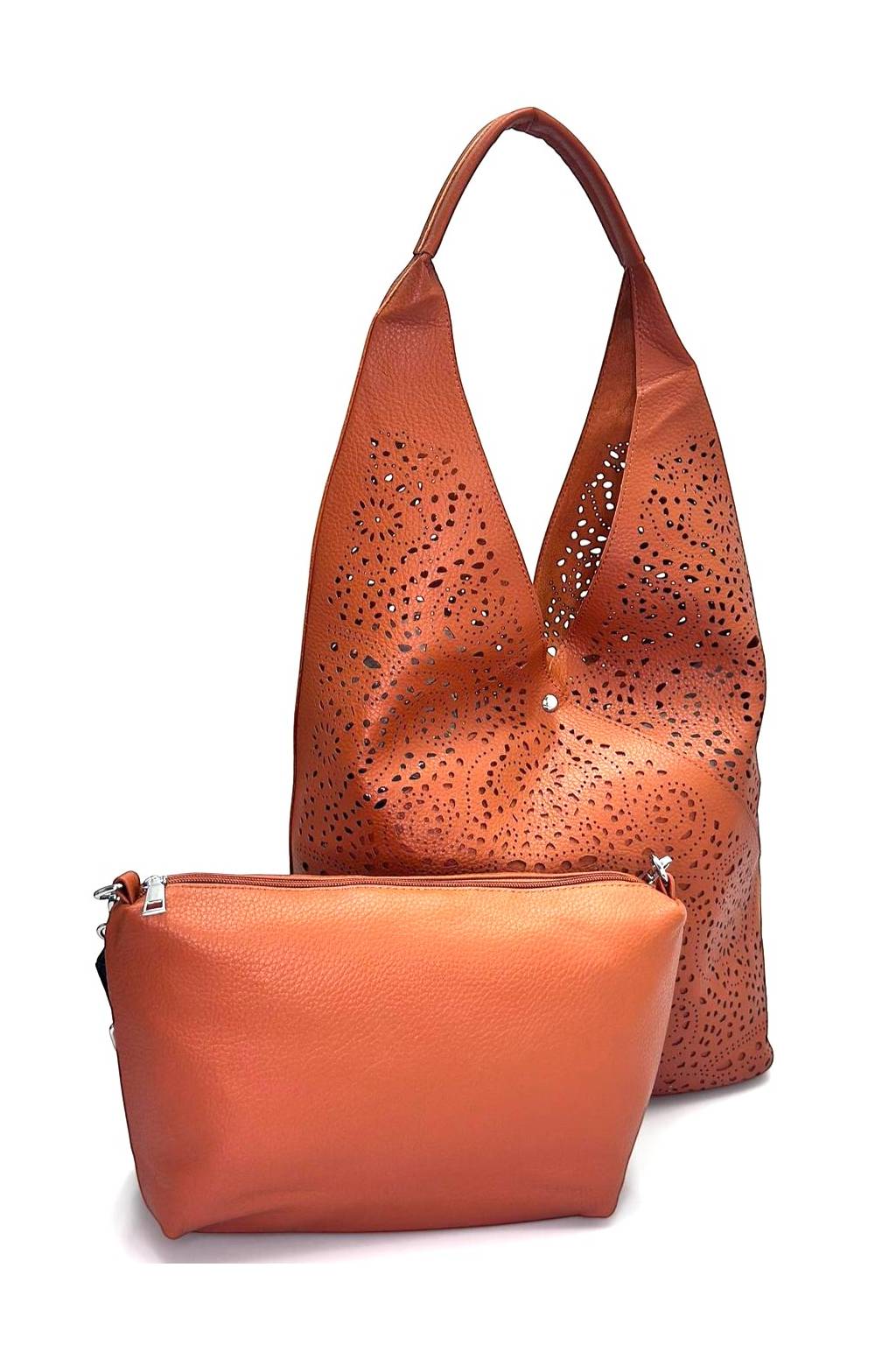 Veľkou výhodou je riešenie 2v1: súčasťou kabelky je samostatná vnútorná taštička, do ktorej si bezpečne uložíte peňaženku, mobil, kľúče aj kozmetiku. Vďaka tomu máte vo veciach poriadok a nič sa nestráca v priestore kabelky. Pohodlné široké ucho umožní nosenie na ramene aj v ruke – ideálne do práce, do mesta aj na voľný čas.