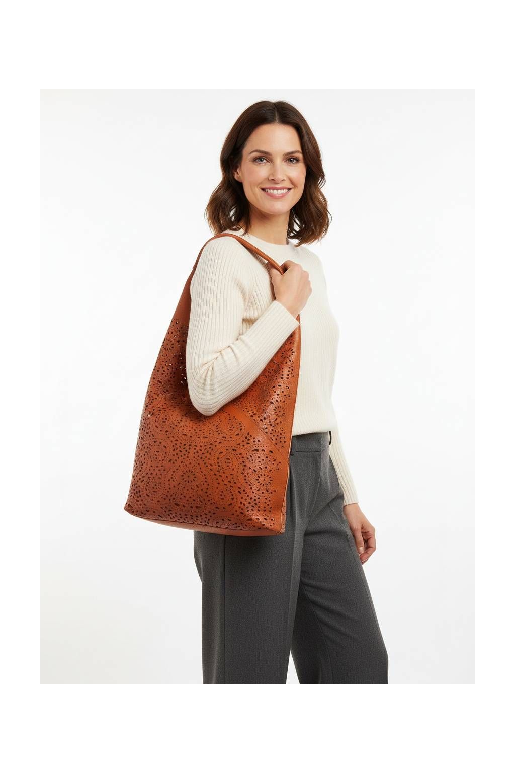 Hľadáte kabelku, ktorá vyzerá luxusne, je ľahká na nosenie a zároveň praktická na každý deň? Táto dámska kabelka v štýle hobo zaujme elegantným perforovaným (vyrezávaným) vzorom, ktorý pôsobí jemne a moderne – v každej farbe vyzerá štýlovo a nadčasovo.