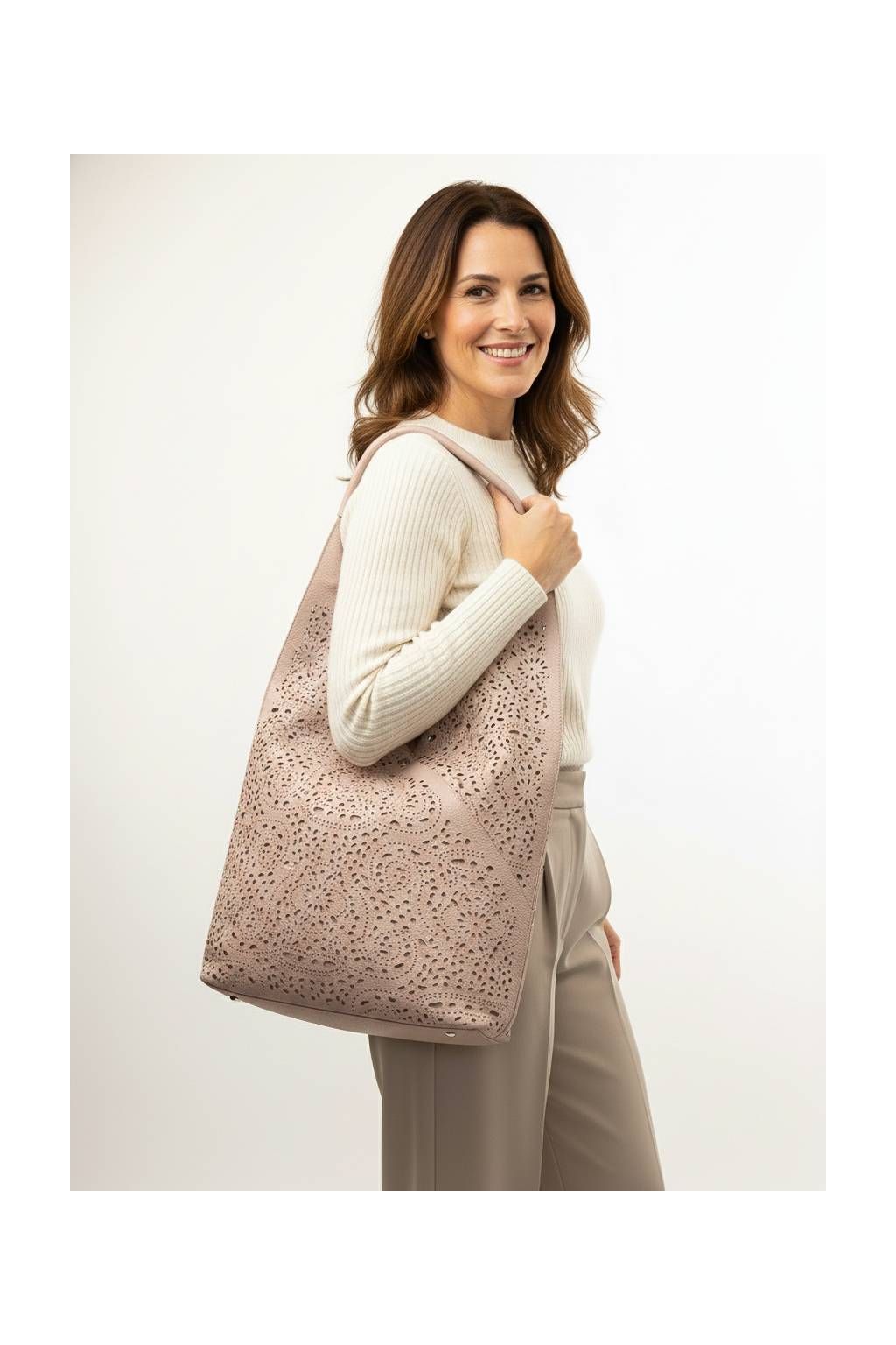 Hľadáte kabelku, ktorá vyzerá luxusne, je ľahká na nosenie a zároveň praktická na každý deň? Táto dámska kabelka v štýle hobo zaujme elegantným perforovaným (vyrezávaným) vzorom, ktorý pôsobí jemne a moderne – v každej farbe vyzerá štýlovo a nadčasovo.