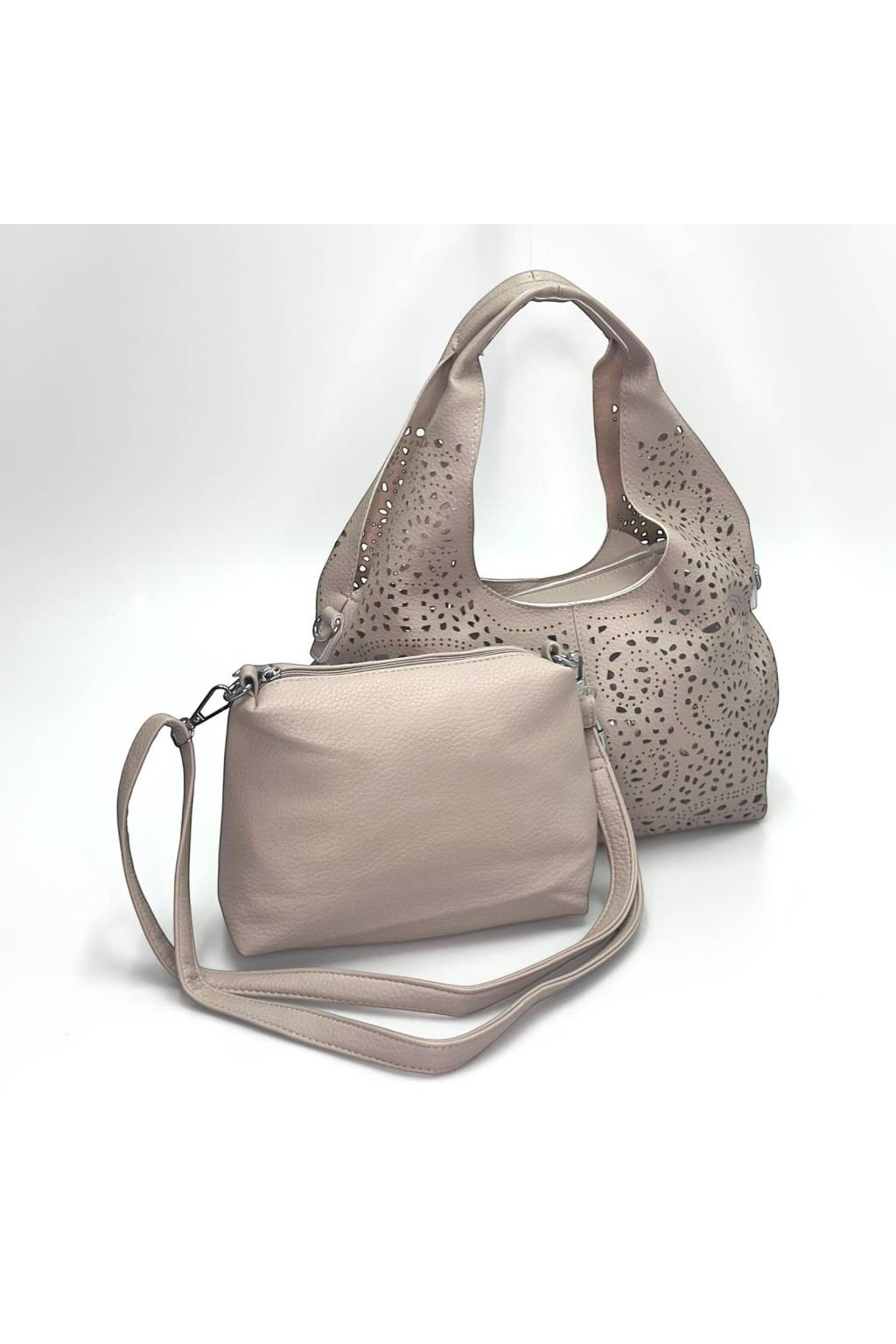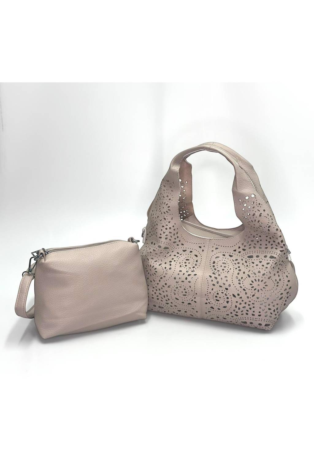 Štýlová dámska kabelka, ktorá zaujme na prvý pohľad – elegantný vyrezávaný (laserový) vzor dodáva kabelke ľahkosť a luxusný vzhľad, vďaka čomu sa hodí do mesta, do práce aj na voľný čas. Praktické prevedenie 2v1 poteší každú ženu, ktorá chce mať veci vždy pekne zorganizované – vo vnútri sa nachádza samostatná vyberateľná taštička, ktorá ochráni vaše drobnosti a zároveň uľahčí prehľadnosť.
