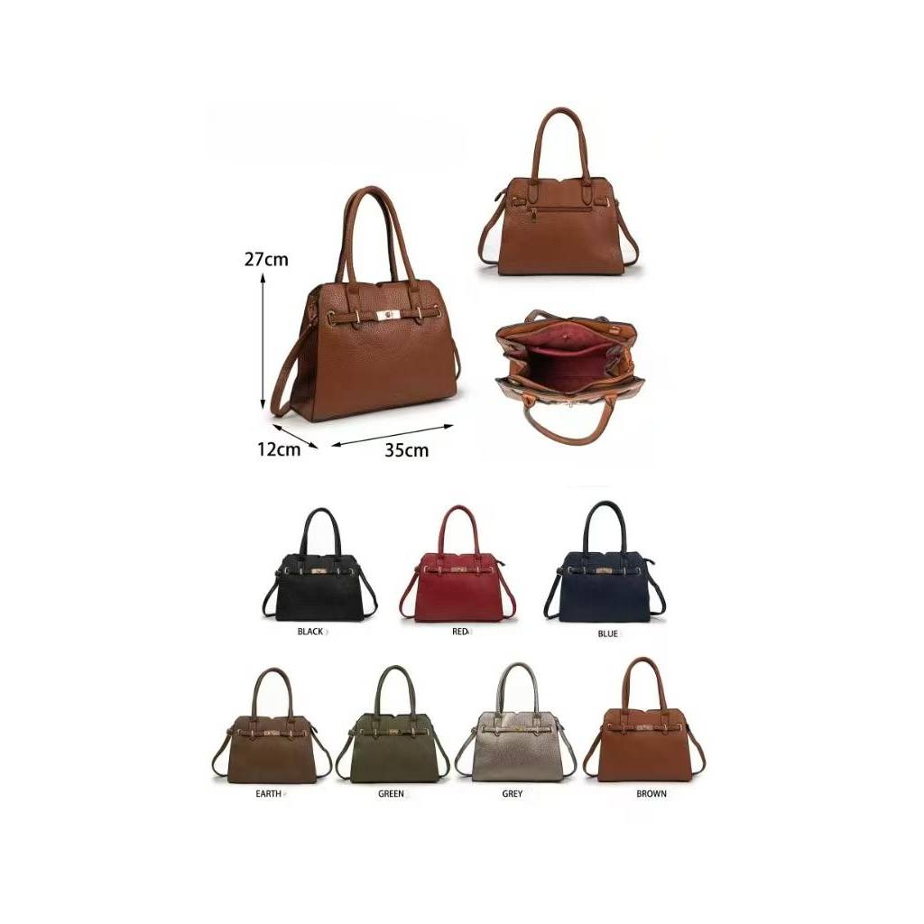 Elegantná mestská kabelka s pevným držadlom a odnímateľným popruhom. Zmestí A5 diár, peňaženku, mobil, kozmetiku aj fľašu 0,5 l – ideálna do práce, do mesta aj na sviatočné príležitosti. Dostupná v niekoľkých farbách.