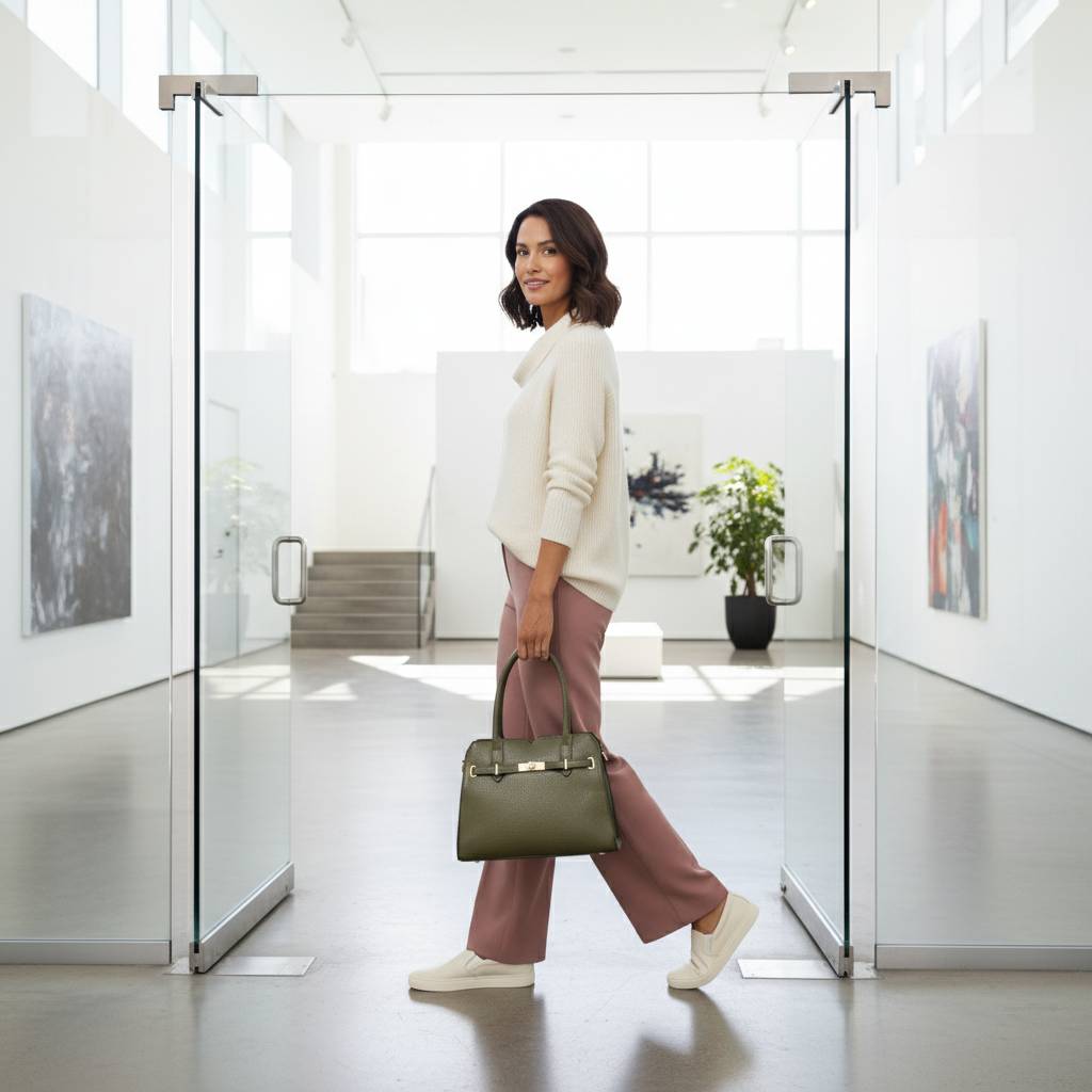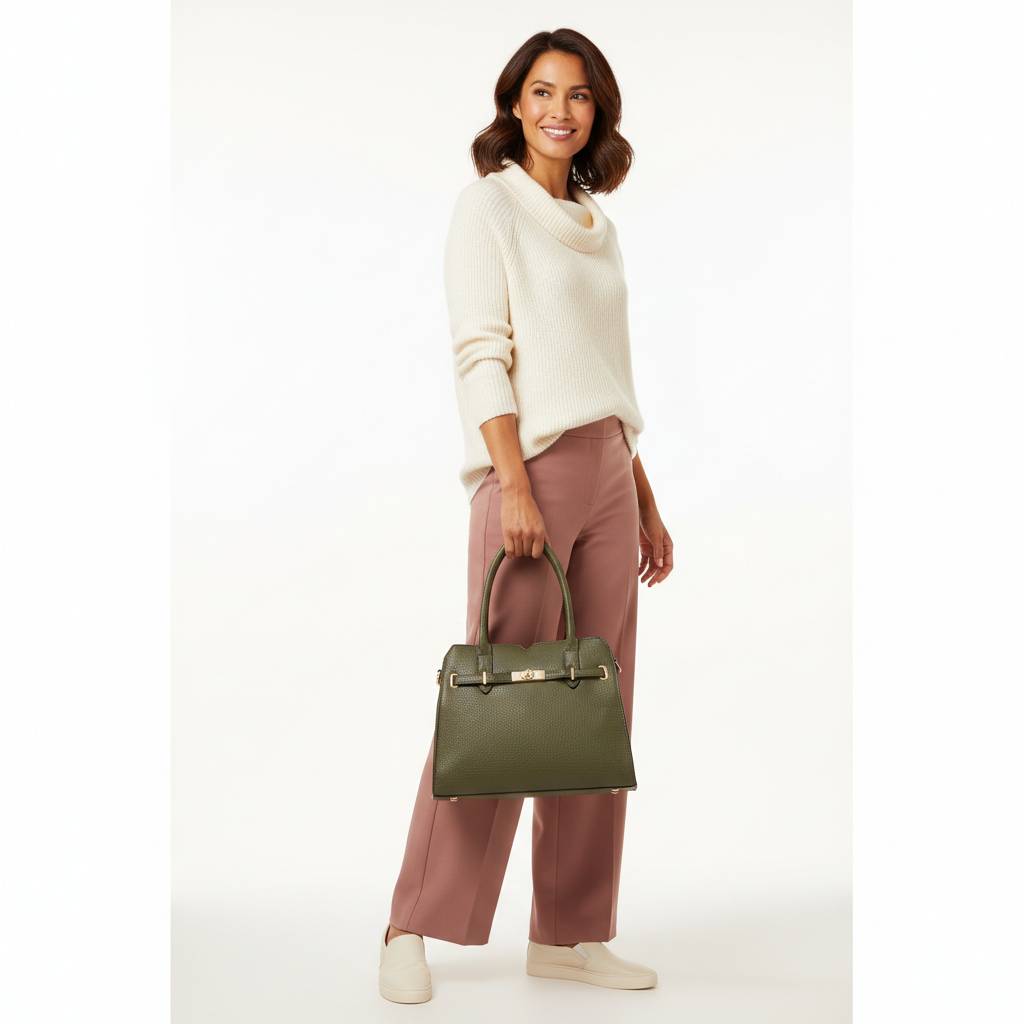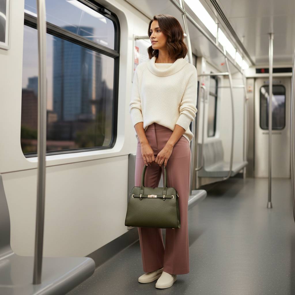 Elegantná mestská kabelka s pevným držadlom a odnímateľným popruhom. Zmestí A5 diár, peňaženku, mobil, kozmetiku aj fľašu 0,5 l – ideálna do práce, do mesta aj na sviatočné príležitosti. Dostupná v niekoľkých farbách.