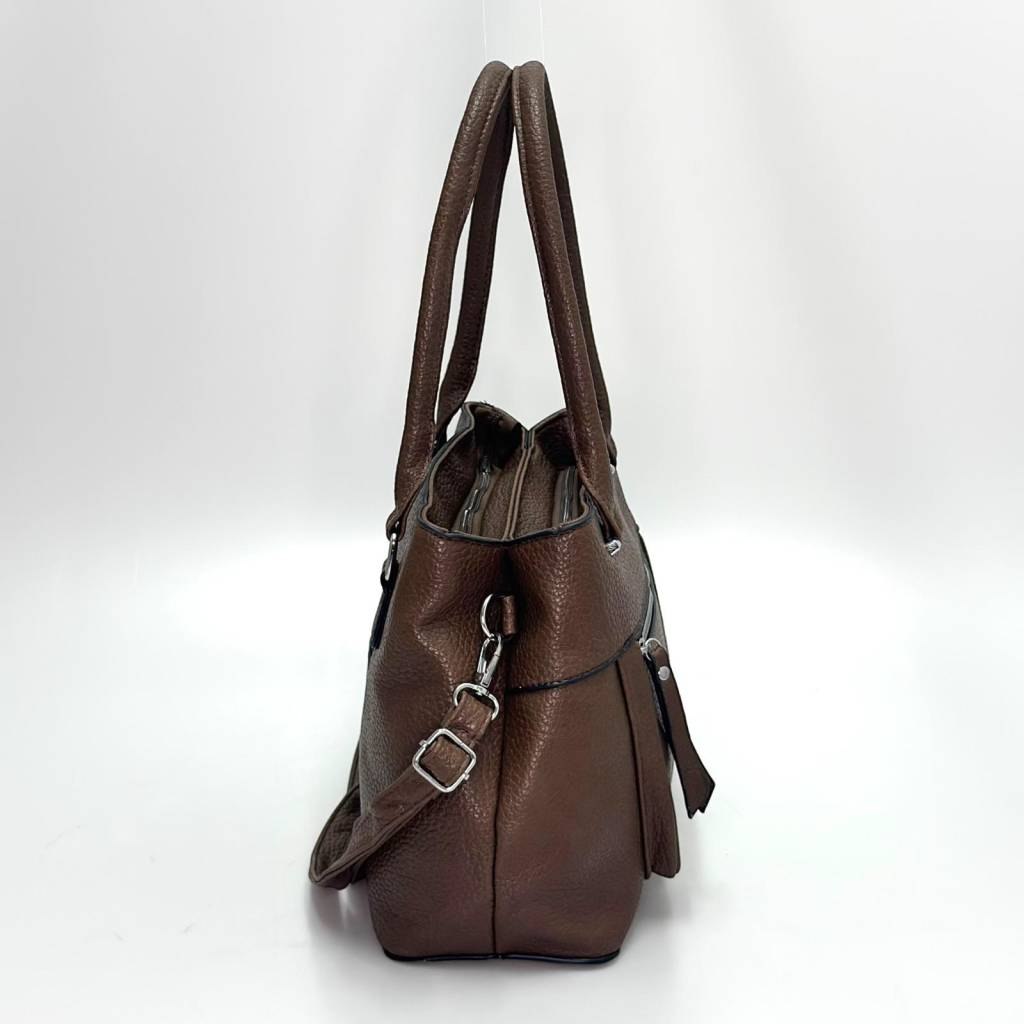 Štýlová dámska kabelka 6187 v klasickom odtieni je stvorená na každodenné nosenie do práce, do mesta aj na stretnutia. Telo kabelky je z kvalitnej eko kože s jemnou štruktúrou, ktorá sa ľahko udržiava a pekne drží tvar.