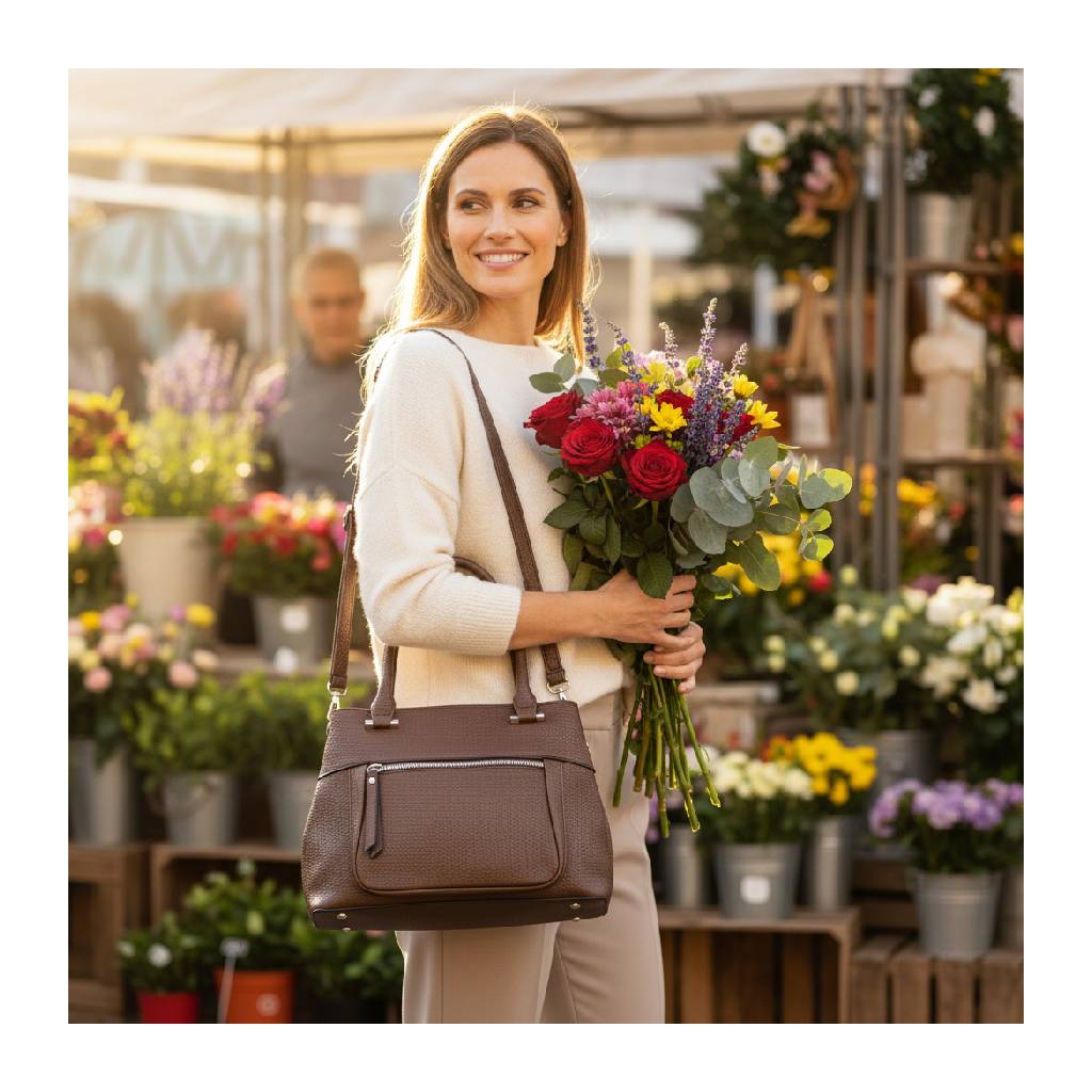 • Elegantný tvar shopperky – drží líniu, no zostáva príjemne mäkká a pohodlná na nosenie.