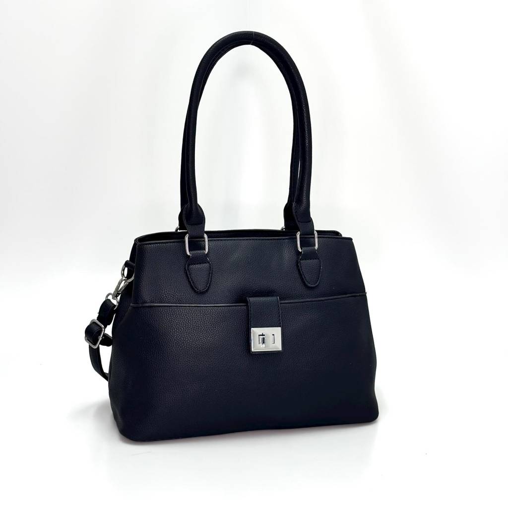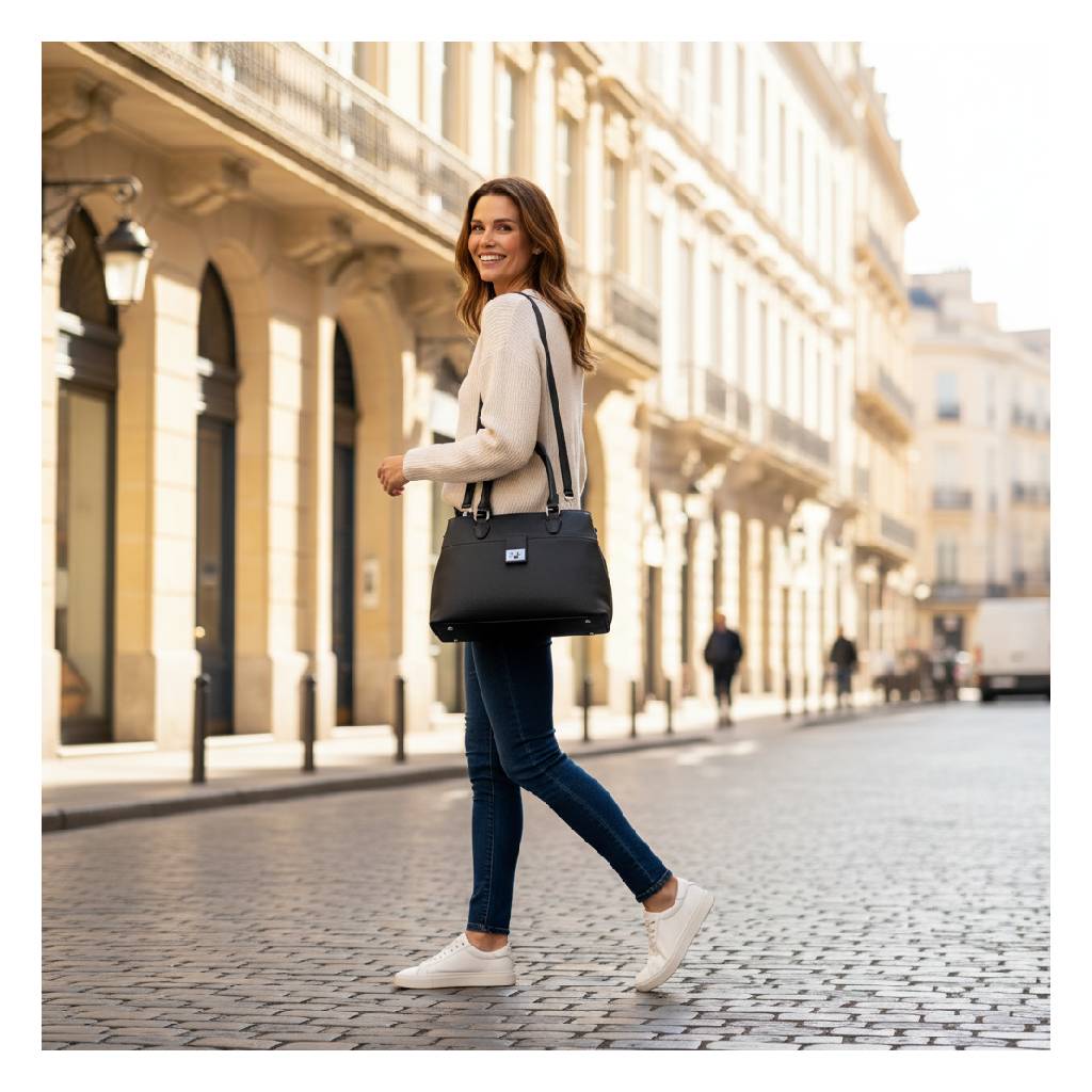Elegantná každodenná kabelka v univerzálnej farbe, ktorá kombinuje čistý dizajn, praktické členenie a pohodlné nosenie v ruke aj na ramene. Nadčasový tvar, jemná štruktúra materiálu a kovové detaily z nej robia univerzálny kúsok do práce, mesta aj na voľný čas.
