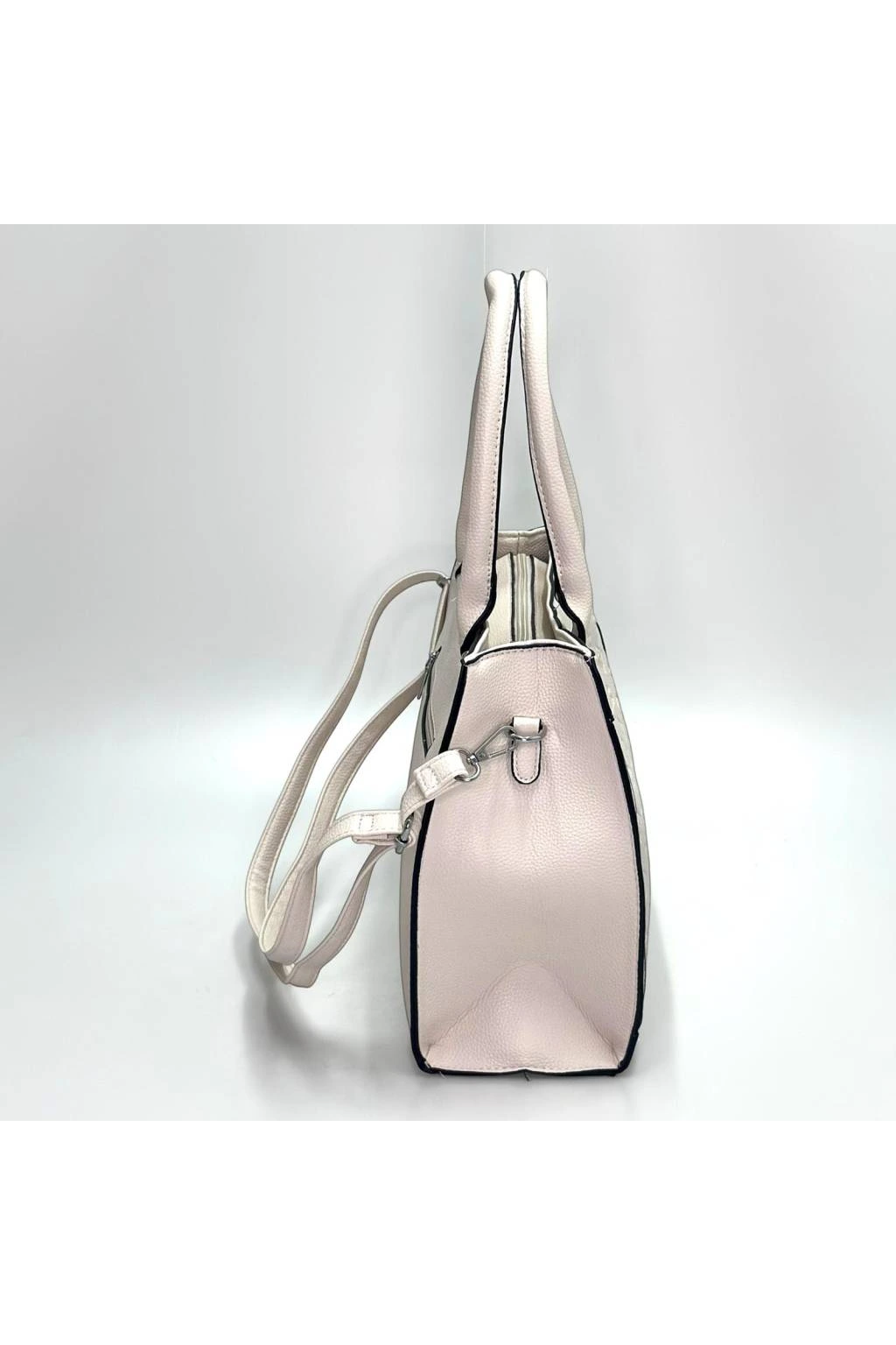 Kabelku môžete pohodlne nosiť v ruke, na predlaktí aj cez rameno vďaka dlhému odnímateľnému popruhu. Vnútorný priestor je prakticky členený, takže si ľahko zorganizujete peňaženku, mobil, kľúče, kozmetiku aj ďalšie drobnosti. Vďaka svojej veľkosti ponúka dostatok priestoru, no stále si zachováva elegantný vzhľad.