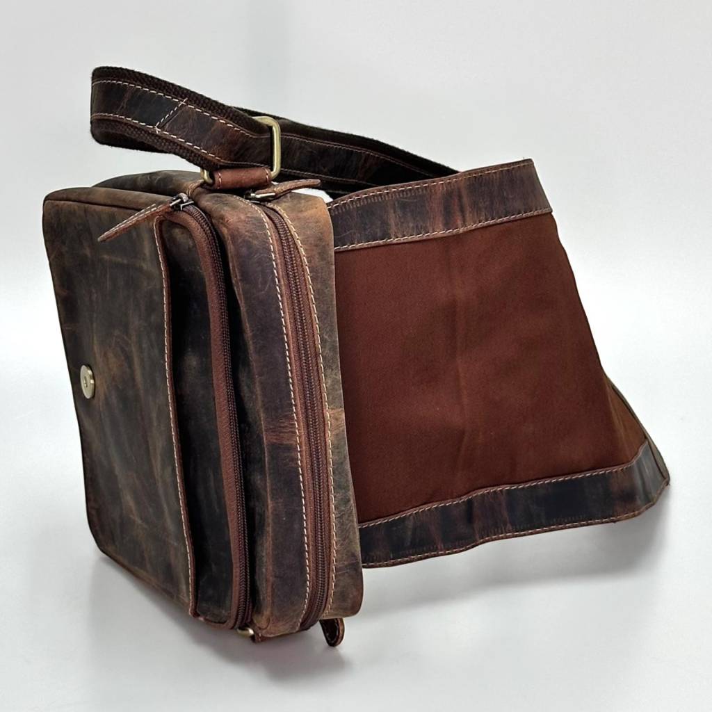 Štýlová pánska crossbody taška v retro „crazy horse“ vzhľade je ideálny spoločník do práce, mesta aj na cestovanie. Kompaktne usporiadané priehradky udržia mobil, peňaženku, kľúče, doklady aj menší notebook/tablet do ~10" v maximálnom poriadku. Hrubší nastaviteľný popruh s koženým pásikom sa nosí pohodlne celý deň.