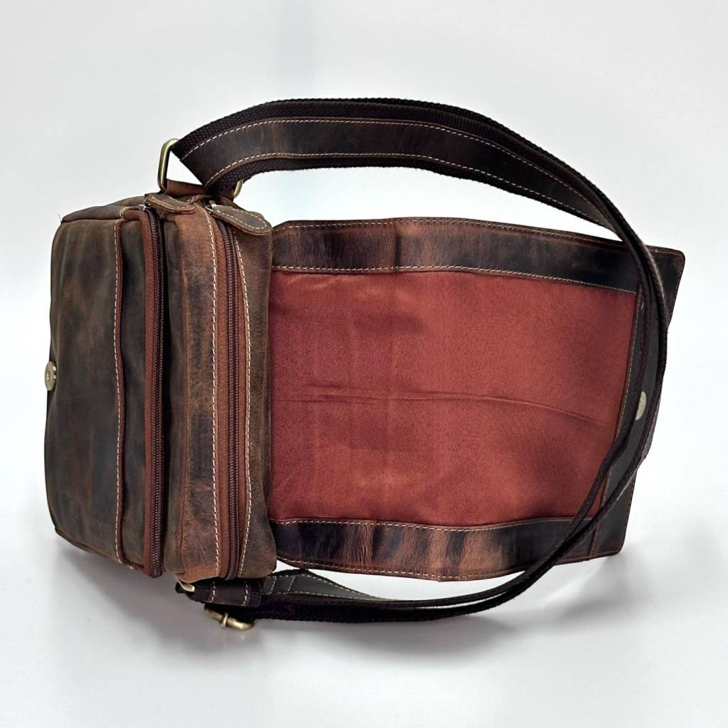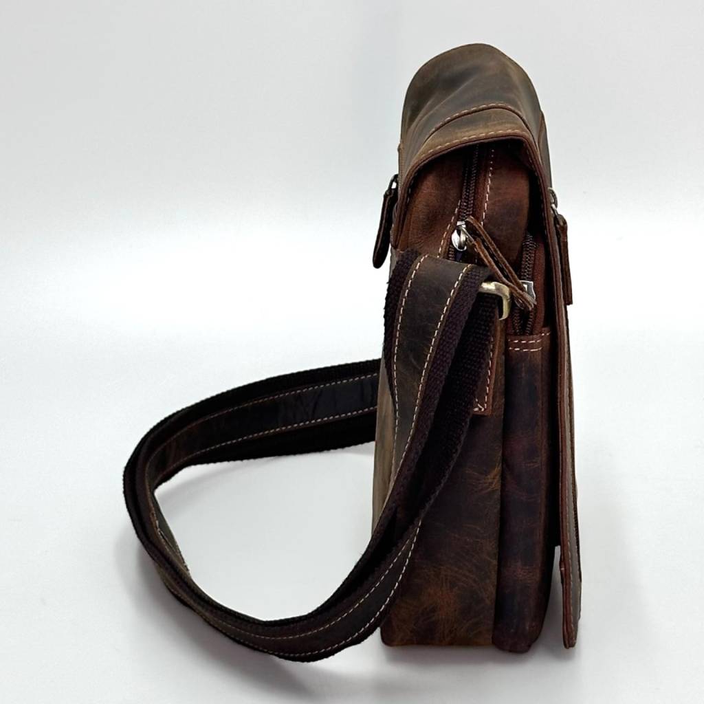 Štýlová pánska crossbody taška v retro „crazy horse“ vzhľade je ideálny spoločník do práce, mesta aj na cestovanie. Kompaktne usporiadané priehradky udržia mobil, peňaženku, kľúče, doklady aj menší notebook/tablet do ~10" v maximálnom poriadku. Hrubší nastaviteľný popruh s koženým pásikom sa nosí pohodlne celý deň.