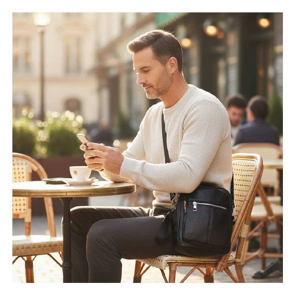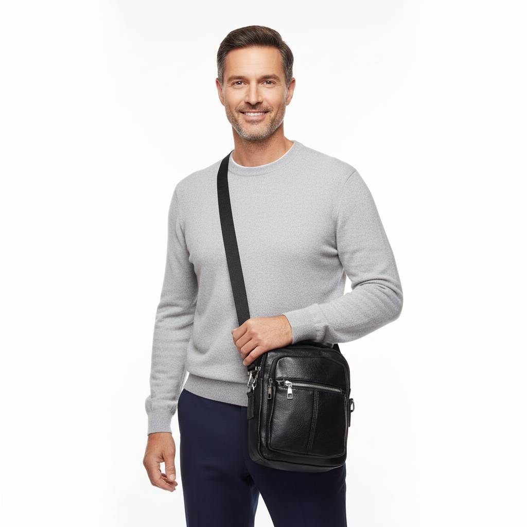 Priestranná pánska taška s možnosťou nosiť v ruke, na ramene alebo ako crossbody.