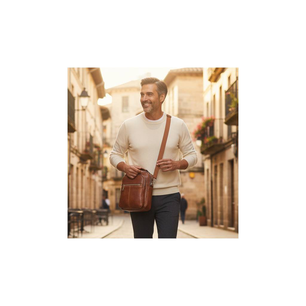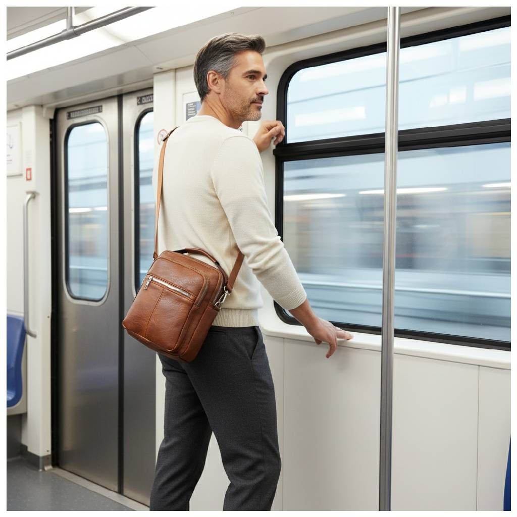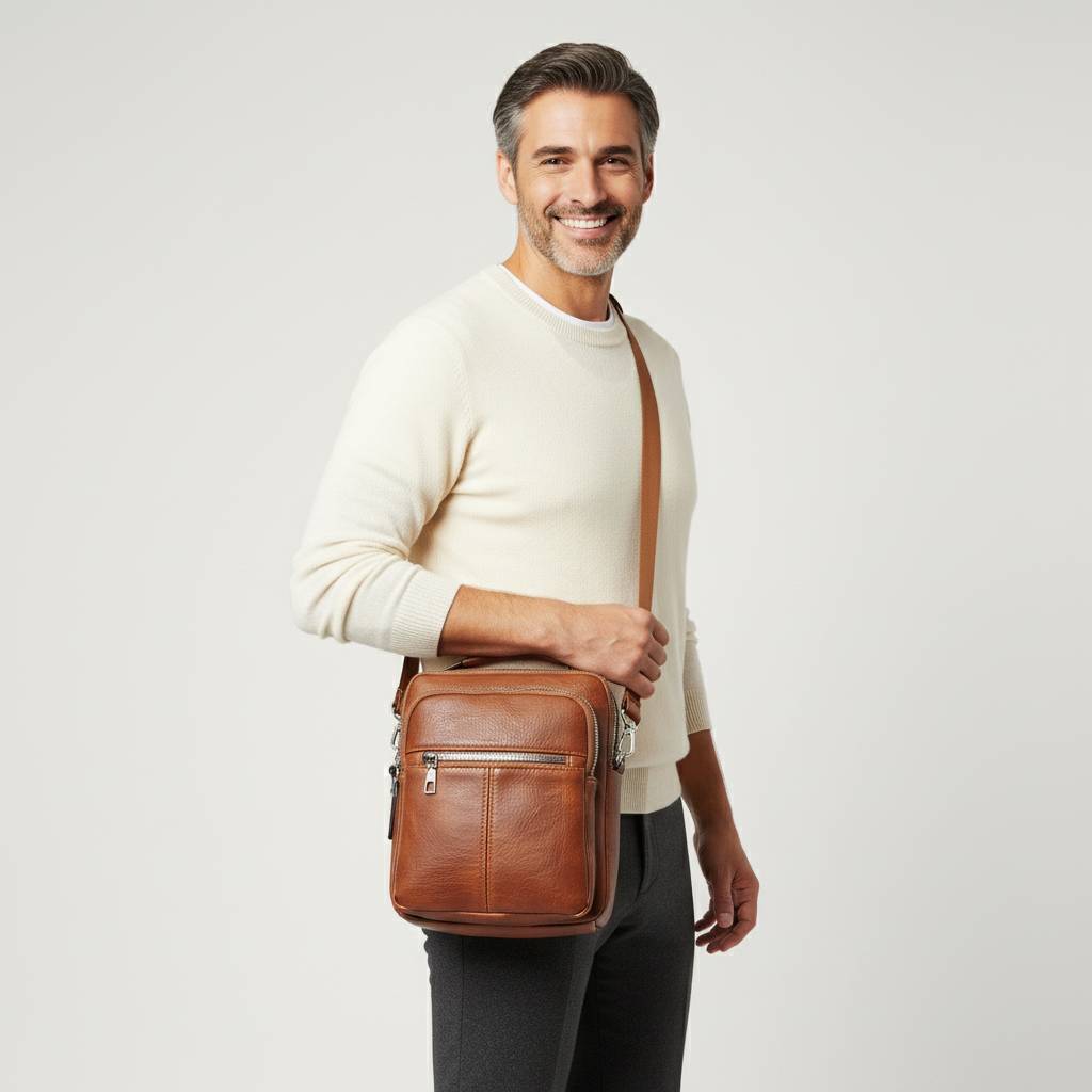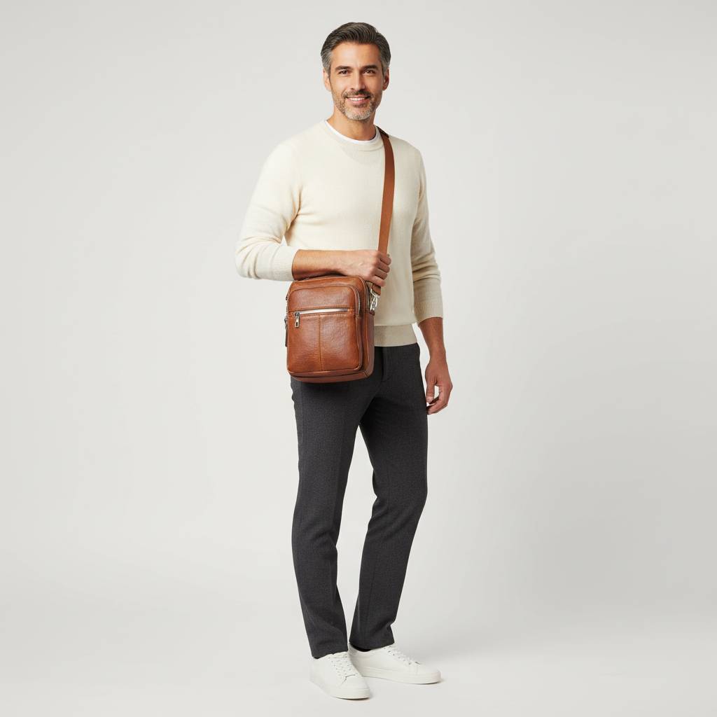 Priestranná pánska taška s možnosťou nosiť v ruke, na ramene alebo ako crossbody.