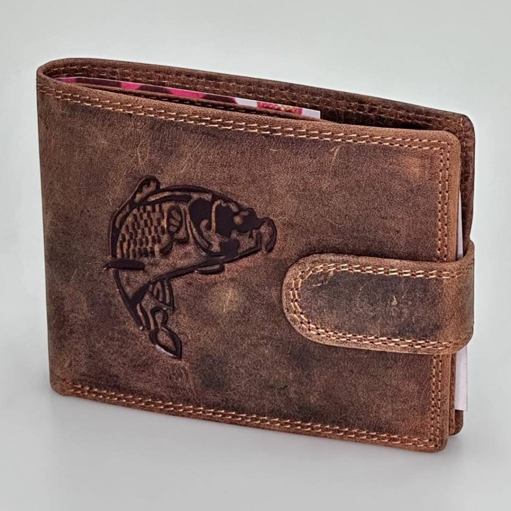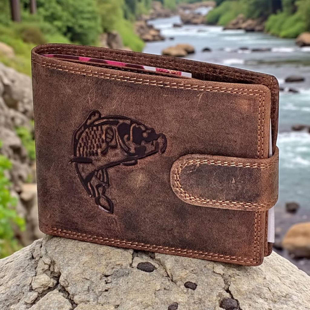 Štýl: pánska kožená peňaženka, rybársky motív