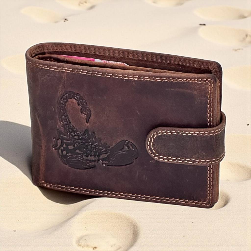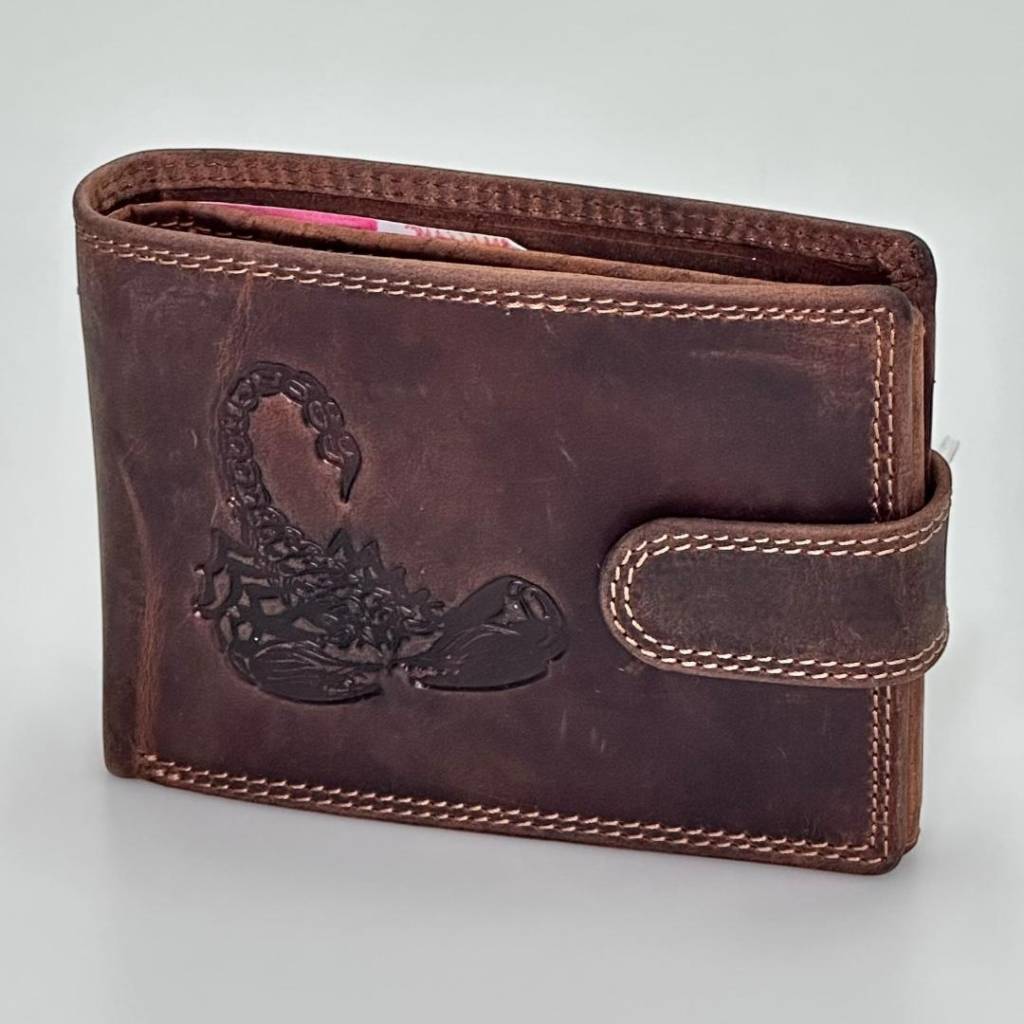 Pánska kožená peňaženka – vintage hnedá so škorpiónom