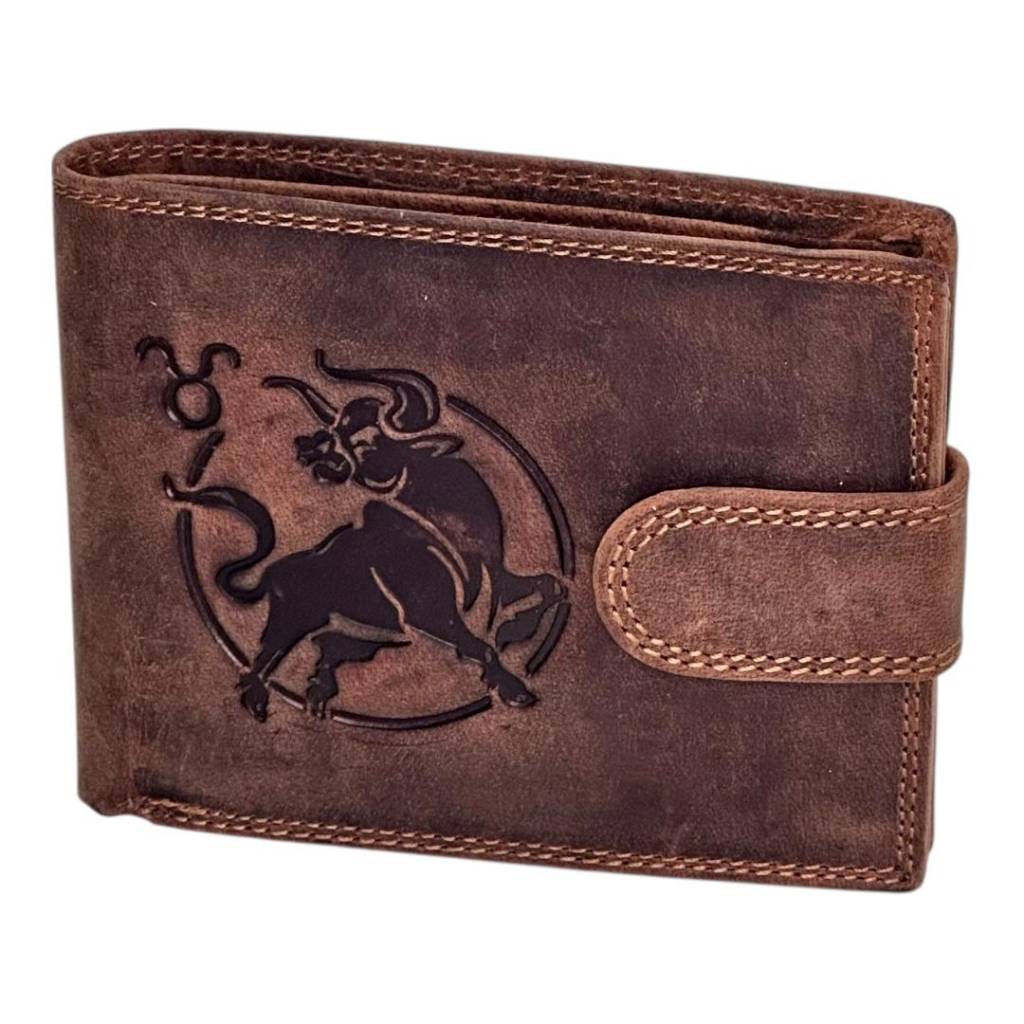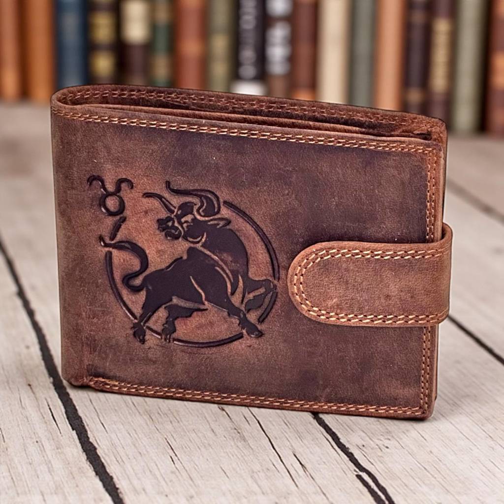 Pánska kožená peňaženka – znamenie Býk (hnedá, vintage)