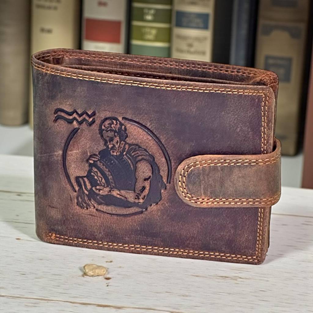 Pre mužov, ktorí chcú pevnú koženú peňaženku s osobitým motívom a praktickým rozložením – ideálny darček pre Vodnárov.