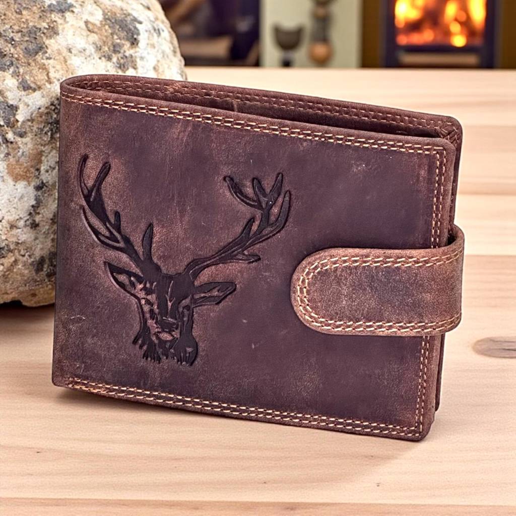 Pánska kožená peňaženka s motívom jeleňa – pravá koža, hnedá