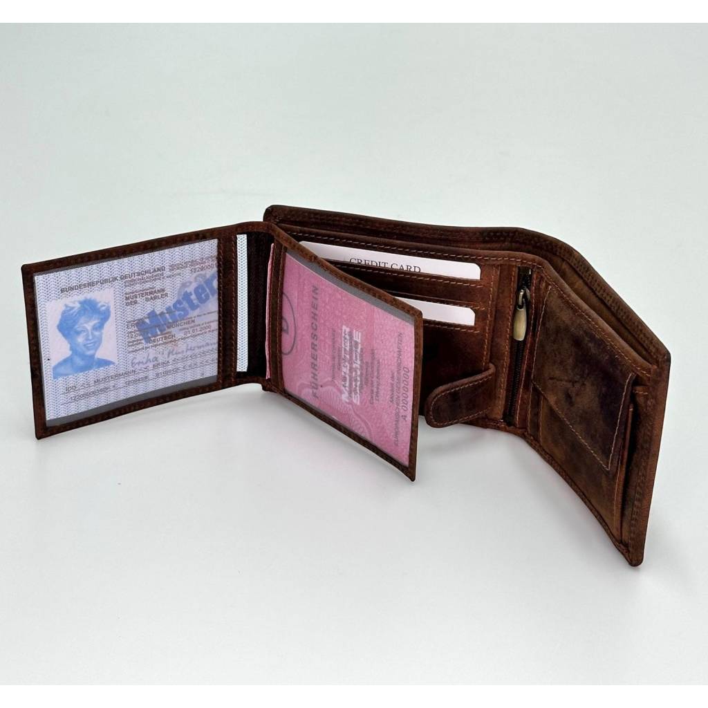 Elegantná pánska peňaženka z pravej kože v príjemnom hnedenom odtieni. Praktické vnútorné členenie s mincovníkom, priehľadnými okienkami na doklady a dvojitou priehradkou na bankovky. Kompaktná, no prehľadne organizovaná – ideálna na každodenné nosenie do vrecka aj do tašky.