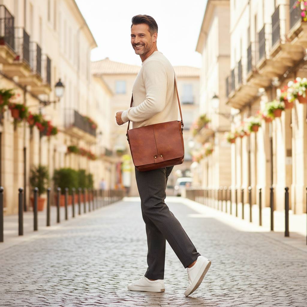 Pohodlné nosenie – mäkké ucho + nastaviteľný ramenný popruh pre nosenie crossbody/cez plece.